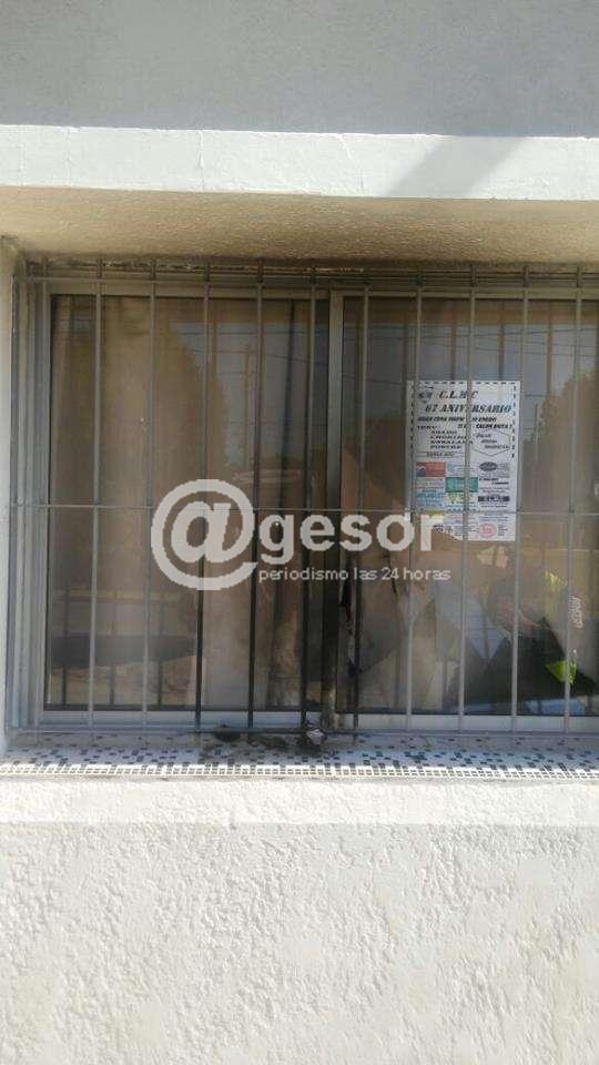 Según pudo constatare la cortina de una de las ventanas de la sede social tomó fuego, quedando rastros en la estructura del edificio.