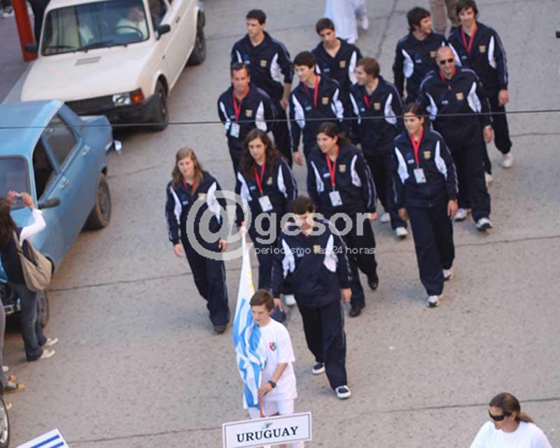 Se piensa en un desfile inaugural, que estaría partiendo desde la esquina de 28 de Febrero y de Castro y Careaga, formándose inicialmente las delegaciones por calle Careaga al Oeste, y desde allí partirán por Careaga rumbo al Centro de la ciudad, hasta Colón donde se doblará a la derecha para ir por la semi peatonal hasta Rodó, por esta hasta Artigas, con el fin de llegar hasta calle Giménez, para ubicarse en la plaza Independencia, en la explanada frente al monumento al Gaucho del Grito de Asencio, donde se procederá al acto protocolar, con ejecución del Himno de Uruguay, con palabras de bienvenidas del Presidente del Pelotaris Mercedes y el Intendente de Soriano, del Presidente de la Federación Uruguaya de Pelota y del Presidente de la Federación Internacional de Pelota Vasca, este último dejando abierto el magno evento. Seguidamente se dará paso por calle Giménez, a grupos que le darán el tono artístico al desfile de retorno al Centro Pelotaris Mercedes, quienes encabezarán el recorrido, secundados por las distintas delegaciones deportivas. Se irá hasta Colón, por esta hasta Ferreira Aldunate, para tomar a la derecha, calle 28 de Febrero hasta la sede del Club, donde se cortará la cinta inaugural.