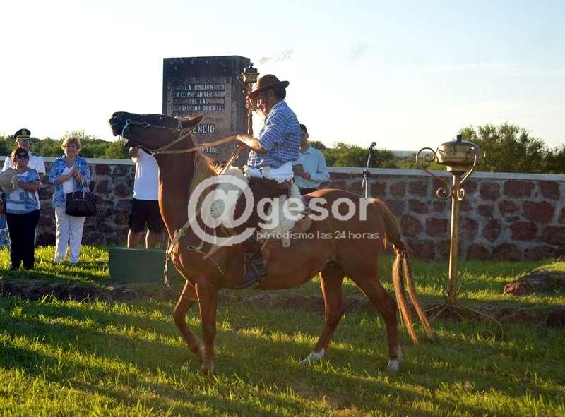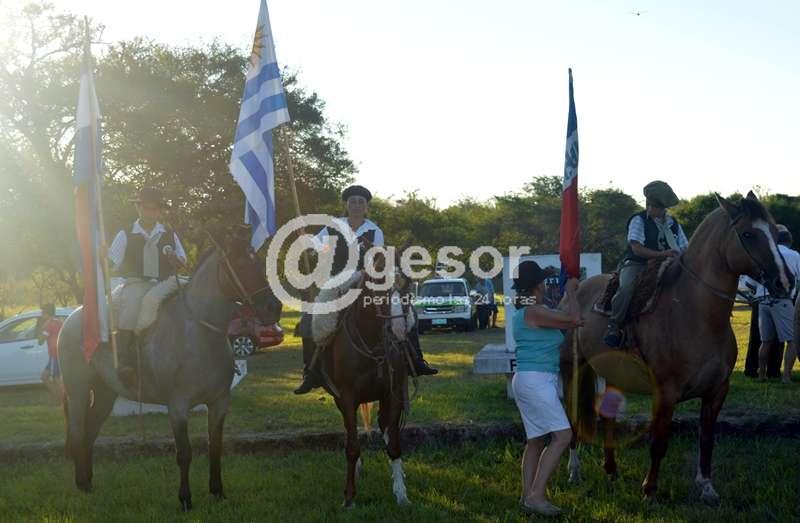El acto se inició con la entonación del Himno Nacional Uruguayo, posteriormente se procedió al encendido de la llama votiva y la partida de la caballería gaucha hacia Mercedes.