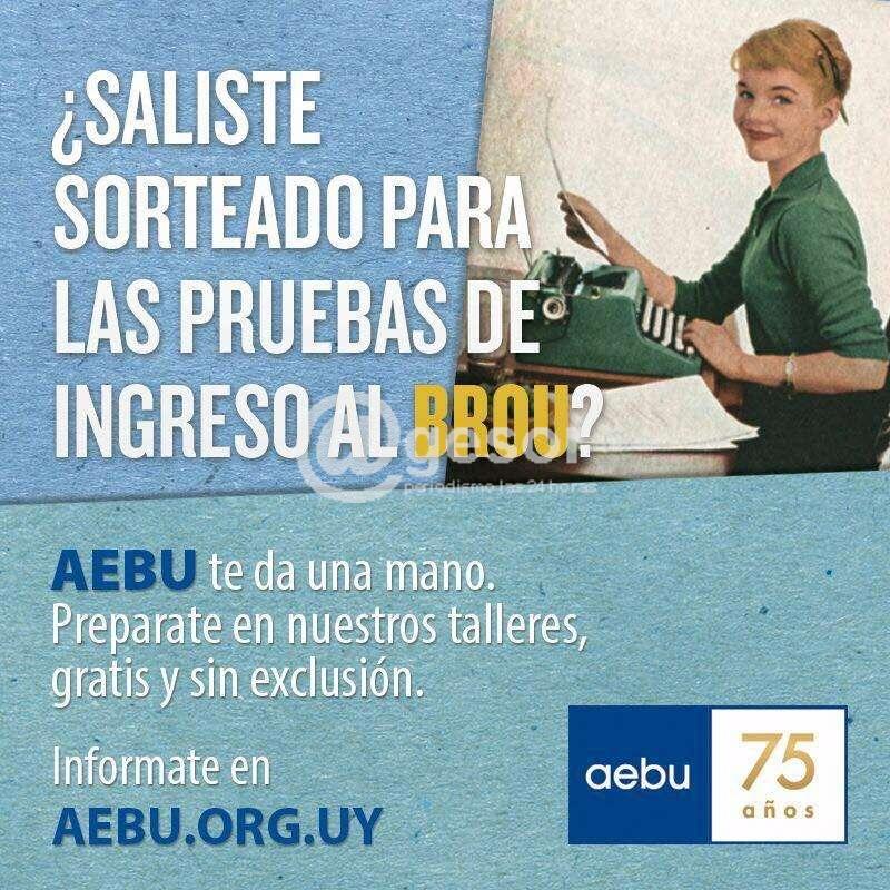 Lunes y martes en la seccional AEBU de Mercedes en Giménez entre Colón y Artigas, de 14.30 a 18.00 horas se reciben inscripciones para los talleres que va a dar AEBU en forma gratuita a todos aquellos postulantes que salieron sorteados para el próximo concurso de ingresos al BROU.