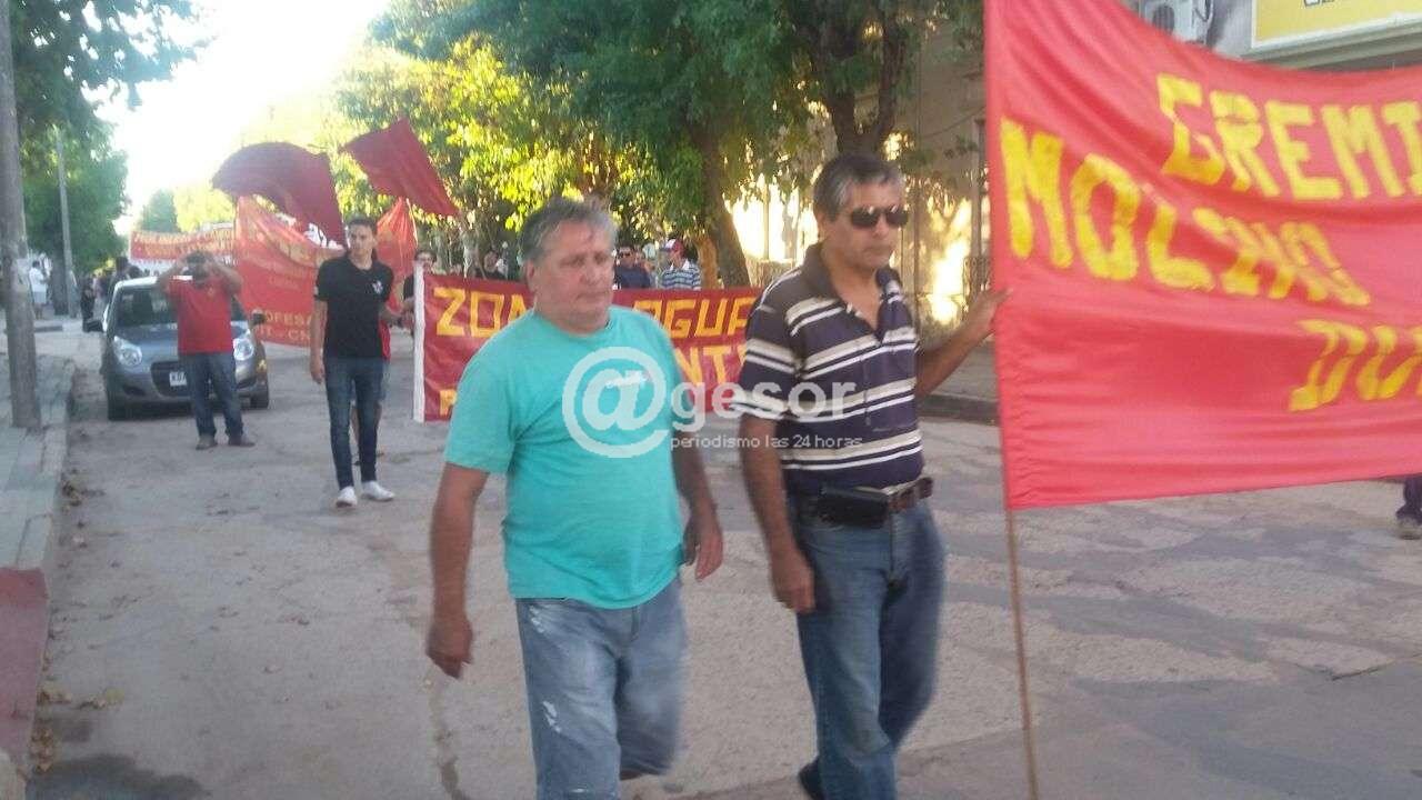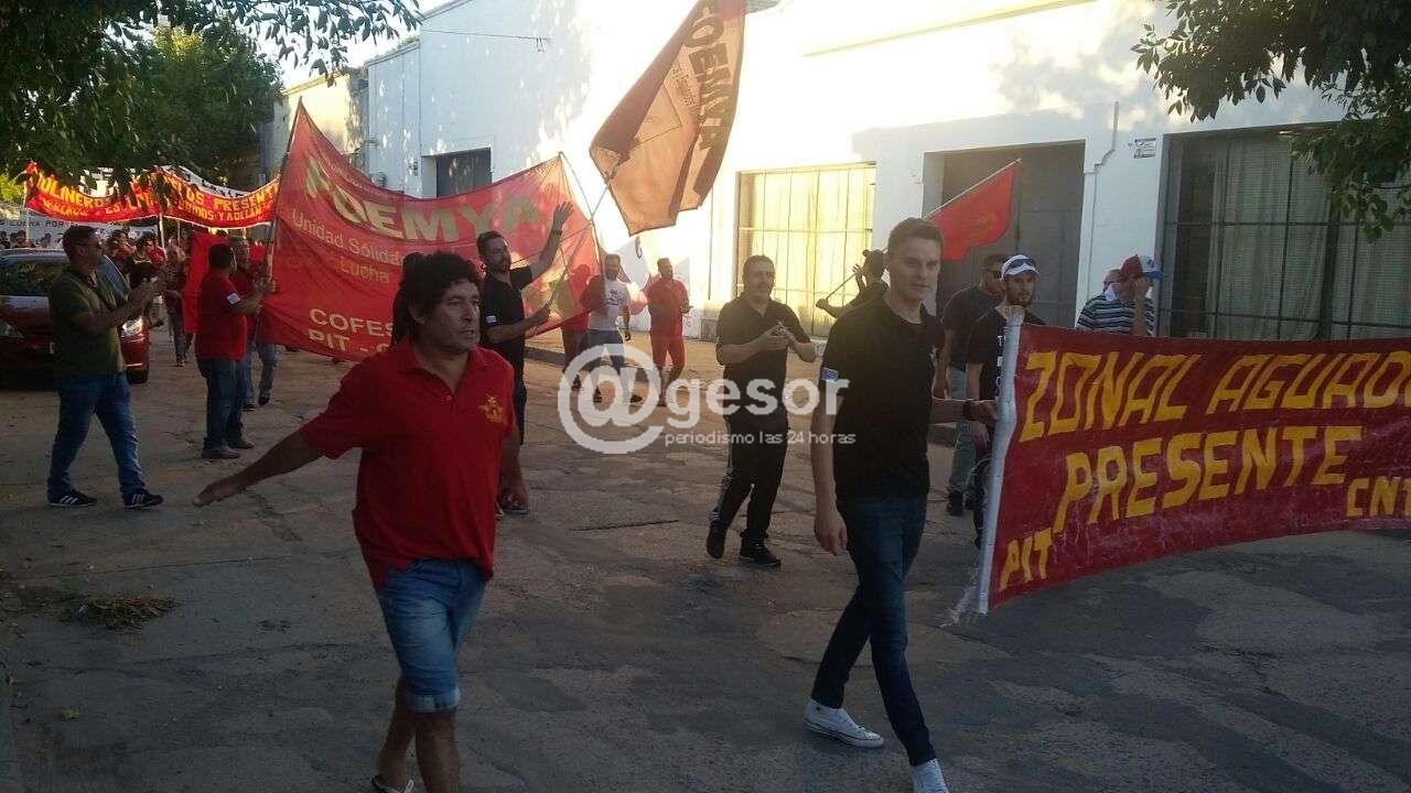 La marcha, iniciada frente a la empresa, en la zona portuaria de Dolores, culminó en la plaza Constitución, donde se realiza un acto.