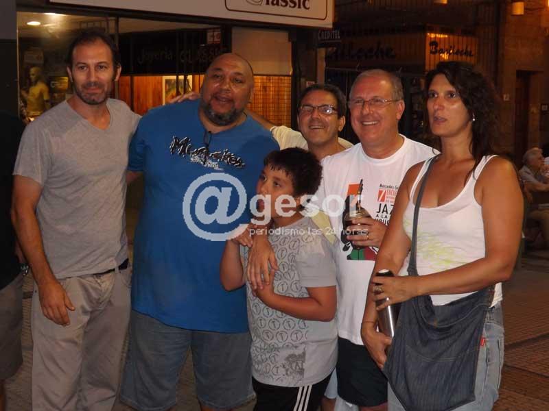 (*) En la fotografía, Daniel Maza aparece acompañado por dos referentes de Jazz a la Calle, Horacio Acosta y Mónico Aguilera, además de posar para la foto junto a su esposa que lo acompañó en su visita a Mercedes.