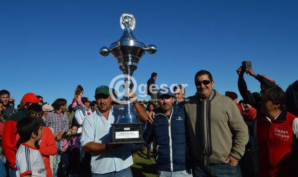 En la segunda otro artiguense "Guerrero" ganó en Mercedes su carrera número 30 nada más y nada menos y su veterano dueño al mejor estilo de la campaña lo saltó limpito en pelo y se sacó la foto con él arriba del caballo y el jockey abajo.