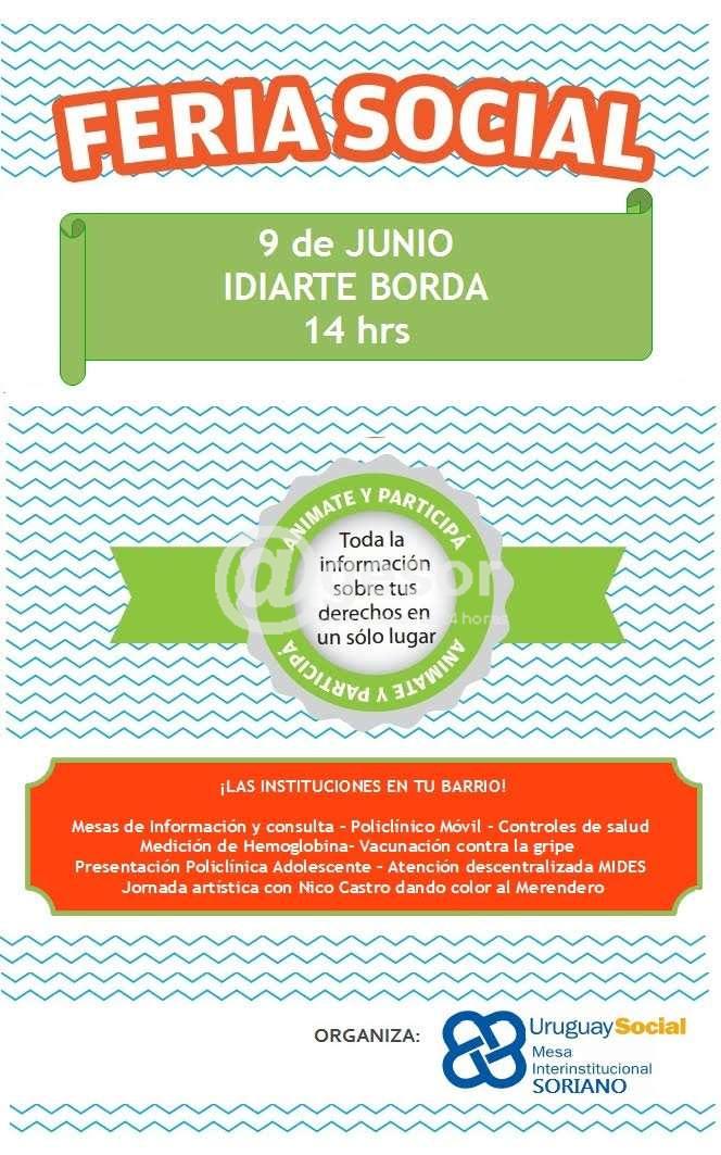 El viernes 9 de junio en el barrio Idiarte Borda-Túnel se realizará la Mesa Interinstitucional de Políticas Sociales de Soriano. La actividad es organizada por Uruguay Social, del Ministerio de Desarrollo Social, comenzando a las 14horas.