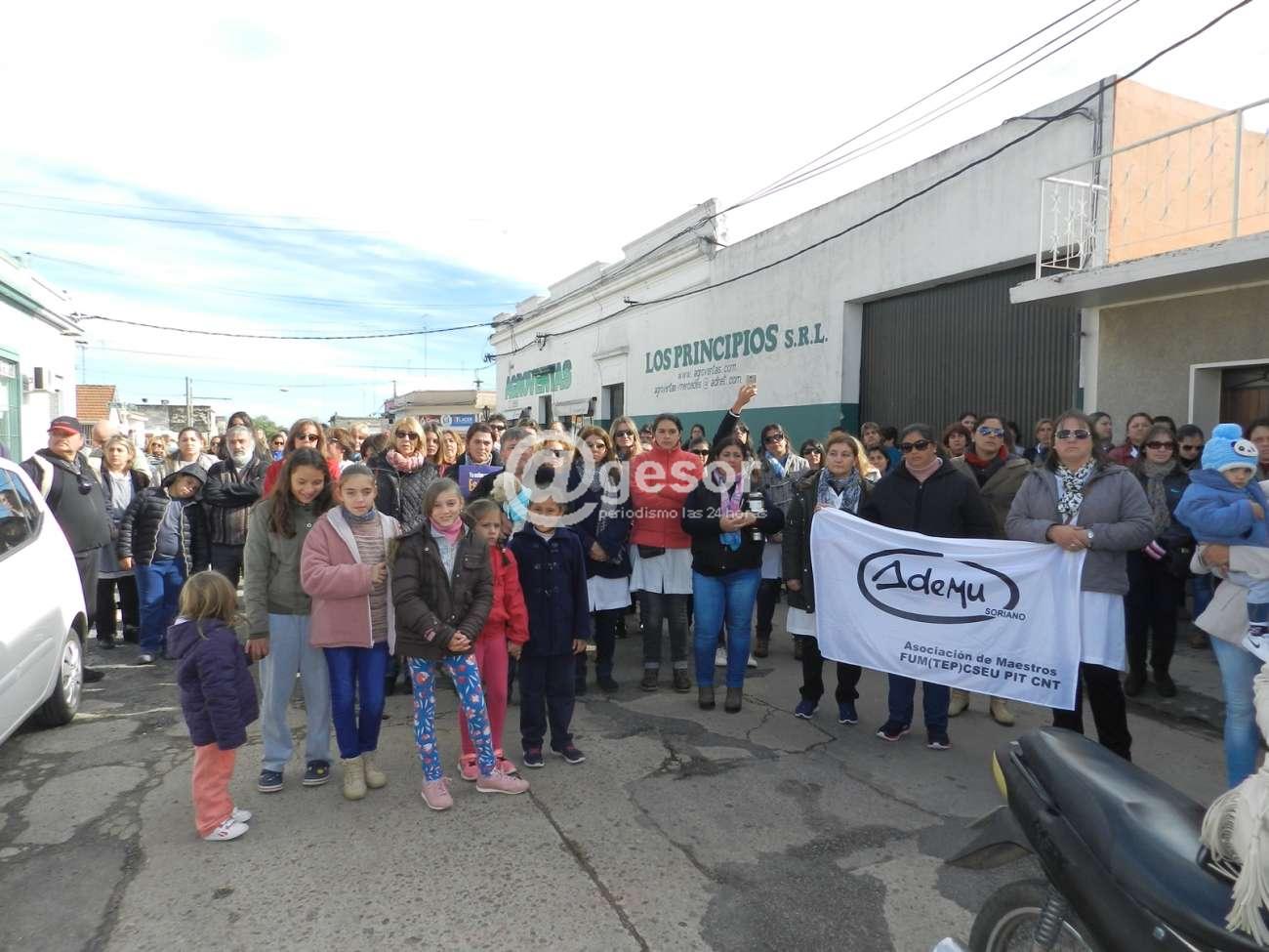 En el marco de la marcha que realizaron al mediodía de este viernes los maestros sorianenses tras la agresión sufrida por maestra de Inicial de la Escuela 24, por parte de una madre de alumno de esa clase, los docentes realizaron una parada frente a la sede del Juzgado de Primer Turno de Primera Instancia de Mercedes, donde se lleyó la proclama, de igual texto a la que se dio lectura frente a la Inspección Departamental de Primaria. Allí también la Presidenta de ADEMU Soriano, maestra Ana Paula Sánchez, confirmó que la maestra agredida y la escuela a la que concurre dicha docente, presentaron denuncia por la agresión sufrida. De acuerdo a lo que pudo averiguar @gesor, la denuncia fue presentada ante la seccional 2a. de Policía, por corresponderle jurisdicción, siendo enterada la sede judicial, y el magistrado actuante dispuso las actuaciones correspondientes y elevación de antecedentes.