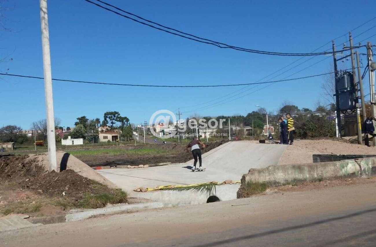 Pero los adolescentes y jóvenes del barrio están utilizando esa base de concreto como pista para hacer evoluciones en patines o skate como lo muestra la fotografía. Cabe señalar que al ser de material de concreto ese uso no va a perjudicar la estructura, pero sí hay que tomar las precauciones en cuanto a medidas de seguridad debido a que al lado está el curso de la cañada y alguien pueda caerse produciéndose lesiones. Es algo a tener en cuenta.