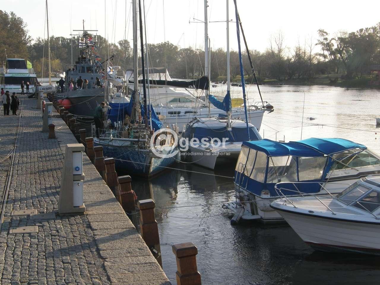 En cuanto a los muelles, el navegante deportivo tiene dos para amarrar: el comercial y el 33 Orientales. El primero, más protegido por la Isla del Puerto, posee tres niveles. Ello se debe a que el río Negro varía considerablemente su nivel debido a las represas que existen aguas arriba. En este muelle se encuentran los servicios de sanitarios y duchas con agua fría y caliente, y las oficinas de Hidrografía y Prefectura. Aquí se amarra normalmente de proa o de popa al boyarín, y de popa o de proa al muelle, lo que más convenga.