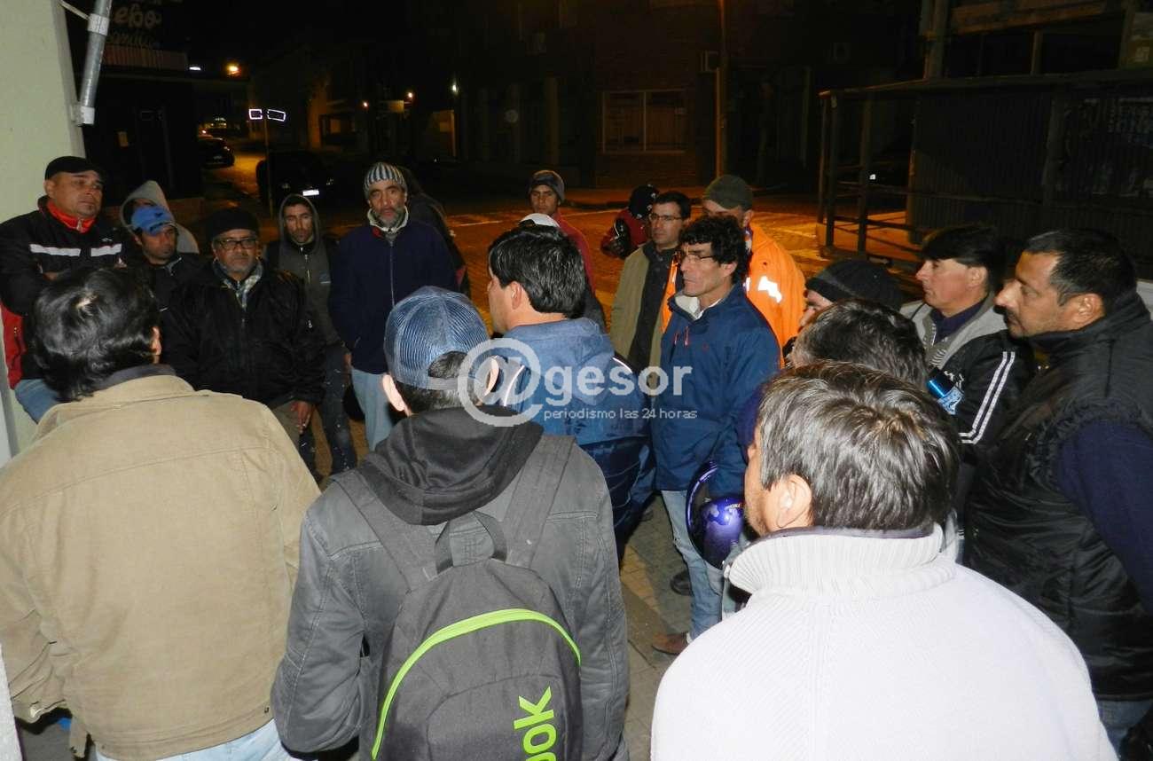 Afuera del edificio de la Junta Departamental decenas de trabajadores que integran el movimiento aguardaron mientras se desarrollaba la reunión las resultancias del encuentro de sus compañeros con las autoridades, que se extendió más de lo esperado, por lo que algunos se retiraron debido al frío reinante, de todas maneras varios aguardaron hasta el final y allí cuando salieron los delegados informaron sobre lo dialogado con los ediles, momento que registró @gesor.