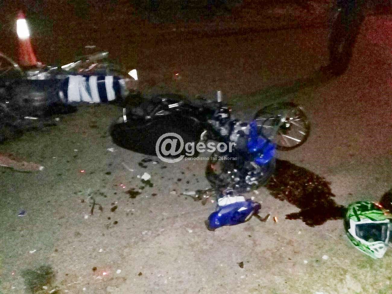 Un siniestro de tránsito de graves consecuencias ocurrió en las primeras horas de la noche de este domingo en el barrio Treinta y Tres de Mercedes. Del mismo participaron dos motos que colisionaron de frente. El hecho sucedió cuando la moto Vital KNE 740 conducida por Esteban Sebastián Pintos Fuentes circulaba por bulevar Freire de Norte a Sur y al ingresar al camino que lleva hacia Pense, se encontró de frente con la moto Winner KMK 651 que se conducía por el camino hacia el bulevar Freire de Sur a Norte, guiada por Edison Ramón Prado Lapido generándose un violento impacto entre ambos birrodados.