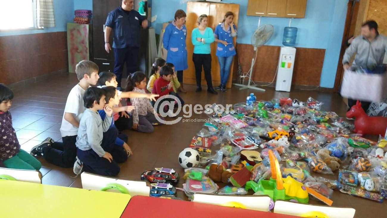 Niños pertenecientes a los planteles de Baby Fútbol de Bristol, donaron juguetes, a integrantes del Club del Niño Túnel, en la tarde de este viernes adelantando la celebración del día del niño.