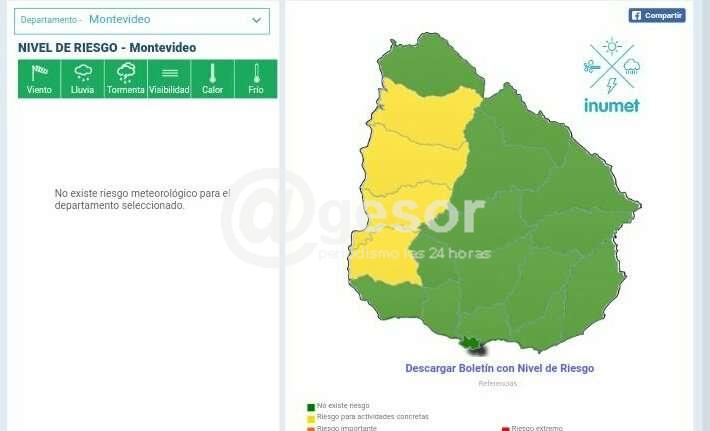 De acuerdo a la nueva actualización, Salto, Paysandú, Río Negro y Soriano son los departamentos que a partir de las 22:00 horas y hasta la 01:00 del viernes están bajo alerta amarilla.