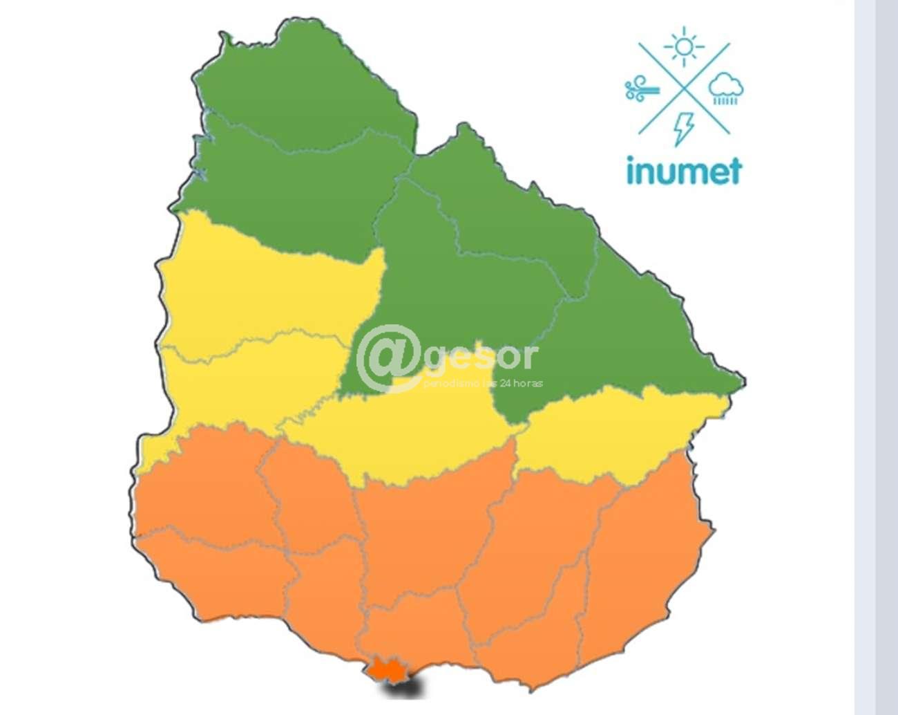 Rige una nueva actualización del Inumet. Para cuatro departamentos el nivel de riesgo es amarillo hasta las 14:00 horas de esta jornada.