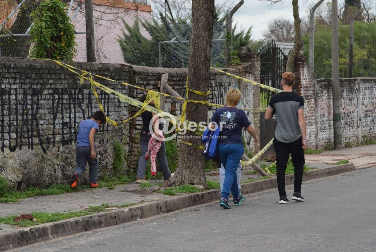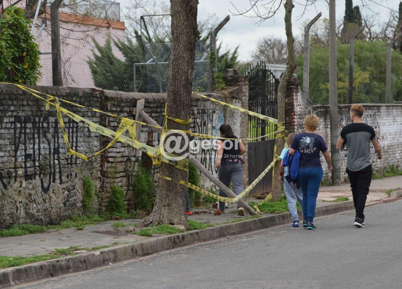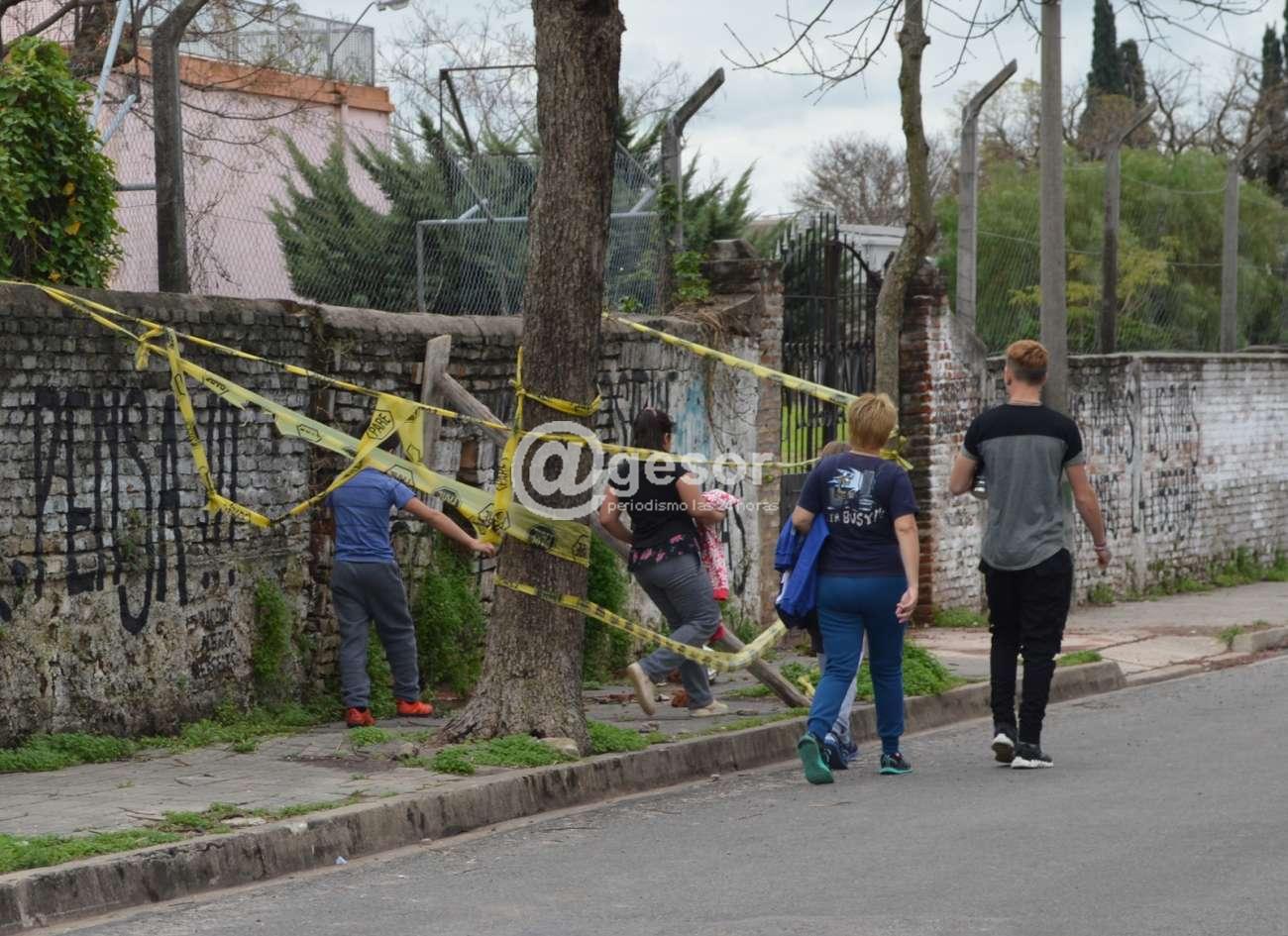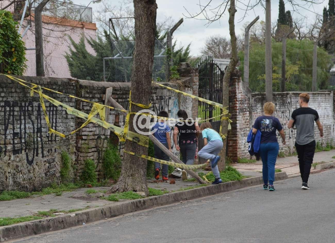 La preocupación de la vecina llevó a que hiciéramos una visita a la zona, este sábado a las 14.10 horas, justo en el momento que estábamos allí pasaba por el lugar un grupo de jóvenes y niños, con al menos una mujer mayor, dos de los niños, tal cual lo menciona la vecina, sin que la mayor dijera nada, levantaron las cintas de advertencia y pasaron por debajo del palo que está sosteniendo el paredón con el riesgo que ello significa, coincidiendo con lo que denuncia la vecina.