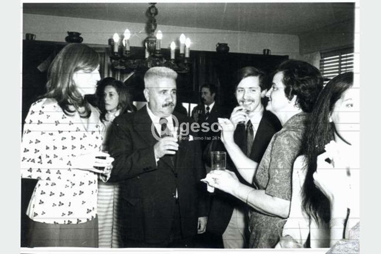 Casamiento de Luis Eduardo González y Elena Zaffaroni en la casa de los padres de Elena. De izquierda a derecha: Elena Zaffaroni (esposa), Gualberto González (tío), Luis Eduardo y esposa de Gualberto (tía). 28 de noviembre de 1974. (foto 2)
