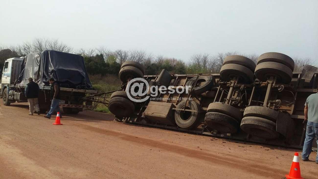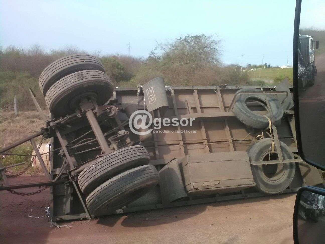 Una zorra vinculada a un camión que transportaba papel para reciclar destino a fabrica PAMER volcó en la mañana de este viernes al tomar el camino "Ángel Cantoni" que une Ruta 14 a los accesos a la empresa.