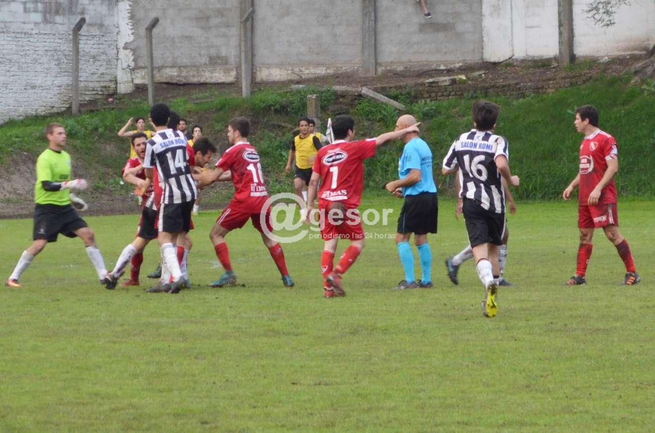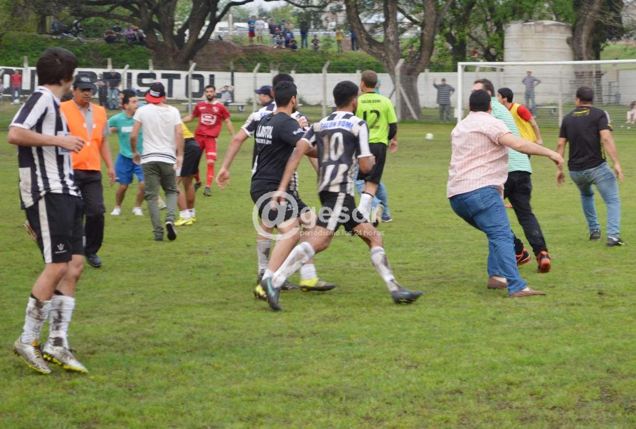 Luego ingresan algunos suplentes, integrantes de los cuerpos técnicos, pero no pasa a mayores, salvo algunos empujones producto de las pulsaciones "a mil" en el final del partido, todo dentro de lo previsible.