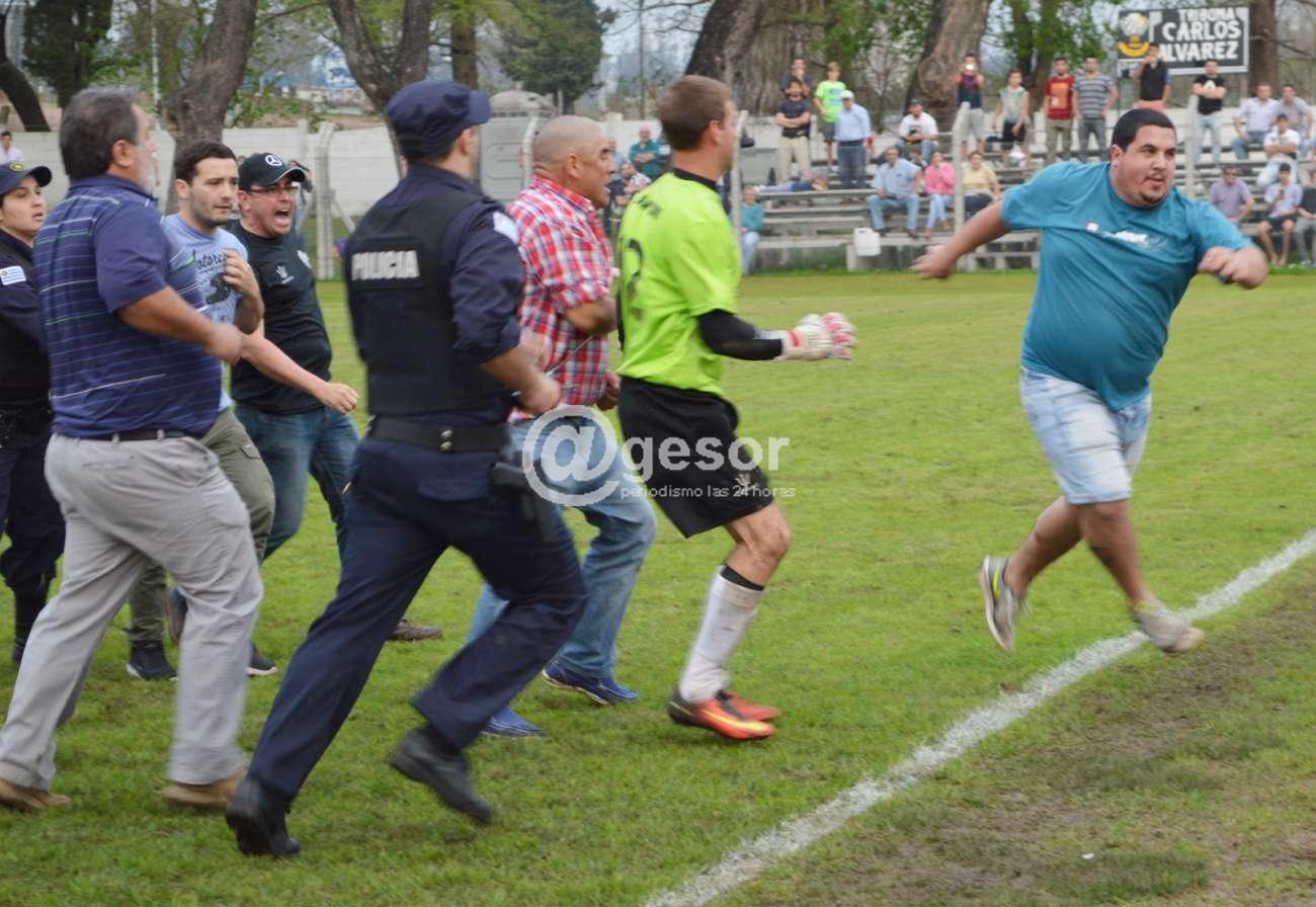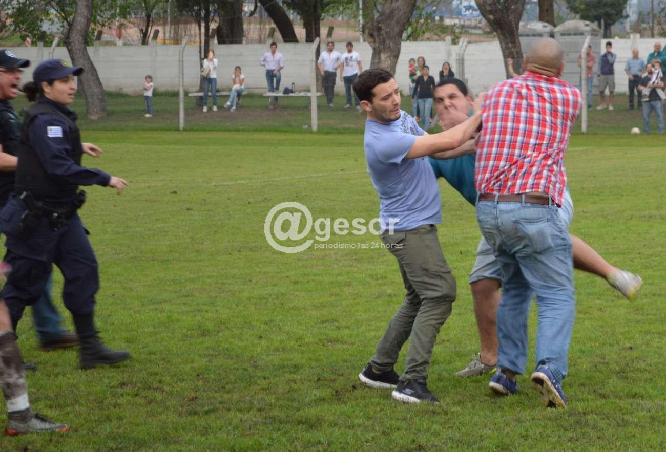 El encuentro fue suspendido a los 90' cuando quedan 4' de tiempo adicional, ahora será el Tribunal de Penas el que entenderá en las denuncias y si como dicen los dos delegados de los equipos al propio árbitro que presentarán la filmación que de acuerdo a lo que nos dijo el colega de CV10 Julio Izaguirre tiene de los hechos, allí podrá apreciarse que hay personas de los dos equipos golpeando de manera artera a otras personas. Por eso lo del título, ¡basta de violencia! ¡Sanciones ejemplares!