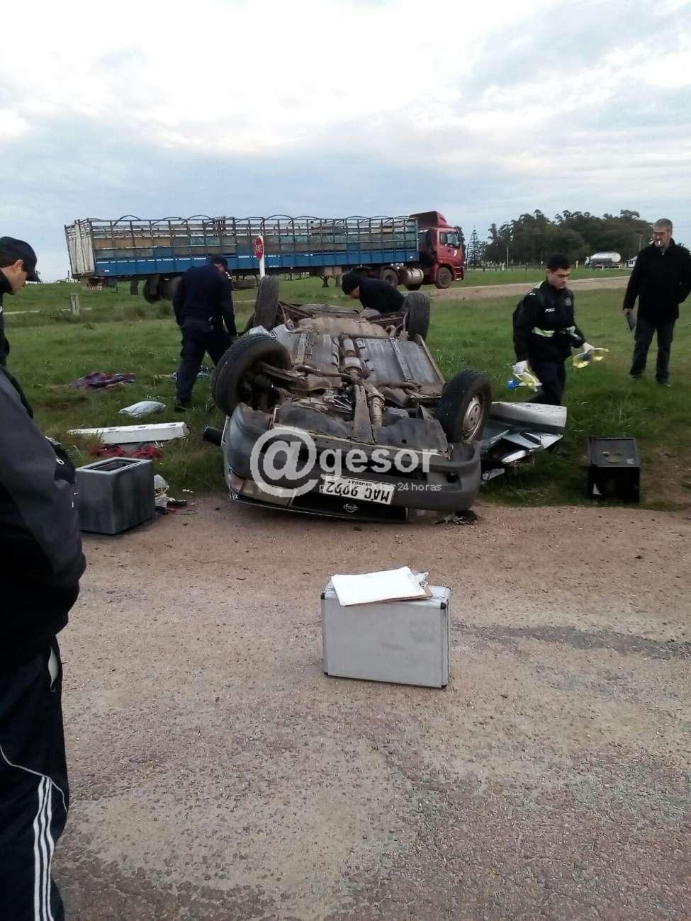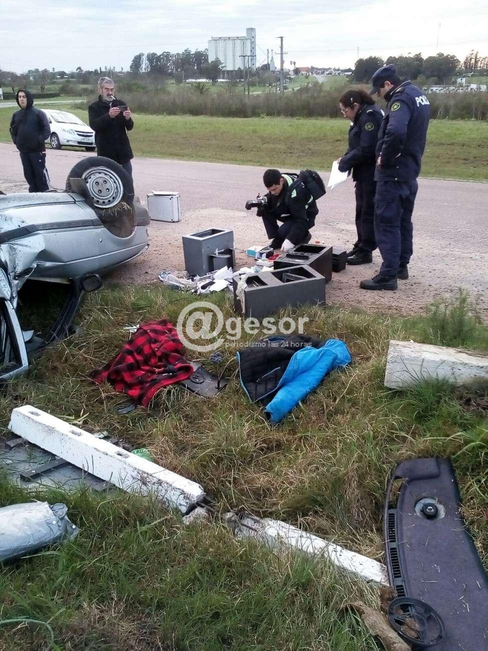 El siniestro tuvo lugar en la intersección de las rutas 2 y 55. El auto en cuestión se trata de un Nissan Sentra Mat. MAC 9992, que había sido denunciado como robado en la capital del país.