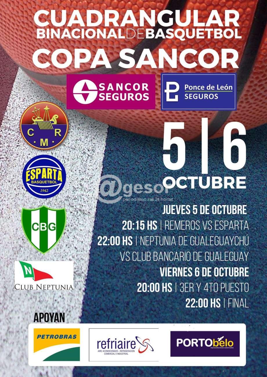 El club de Remeros Mercedes organiza un torneo cuadrangular amistoso binacional de Básquet Copa Sancor los días 5 y 6 de octubre, vistan Neptunia de Gualeguaychú, Club Bancario de Gualeguay y el Club Esparta de Mercedes completan el torneo.