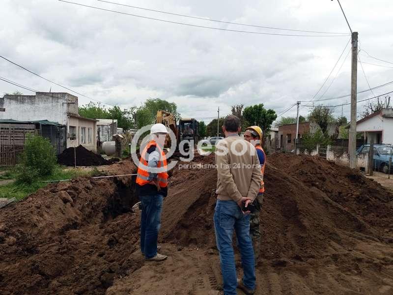 Bascou pudo apreciar las tareas de excavación para las redes de saneamiento y los desagües pluviales que se efectúan en algunas calles del barrio.