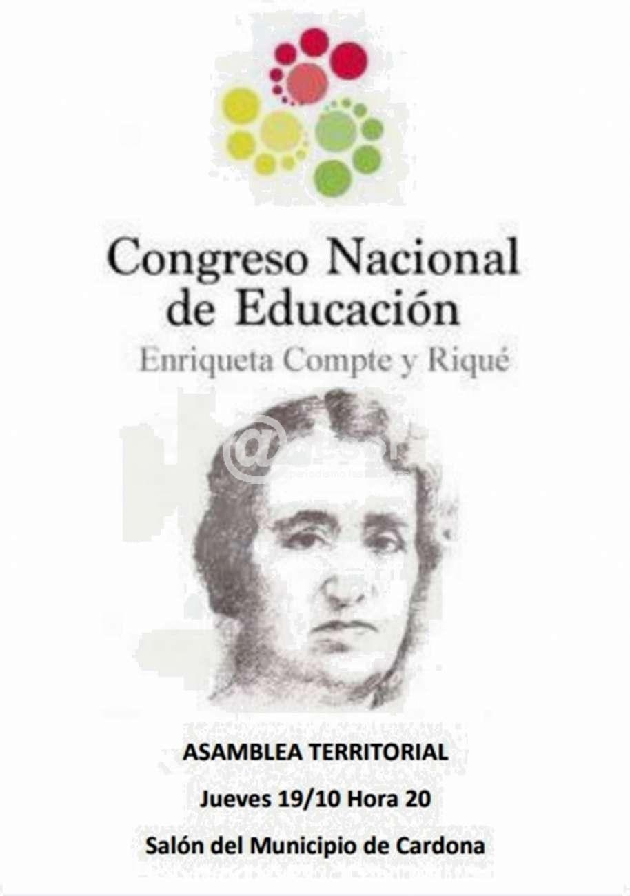 En el salón del Municipio de Cardona, el jueves 19 a las 20.00 horas se llevará a cabo la Asamblea Territorial de cara al III Congreso Nacional de Educación (CNE). Las Asambleas Territoriales son las instancias de debate del CNE.