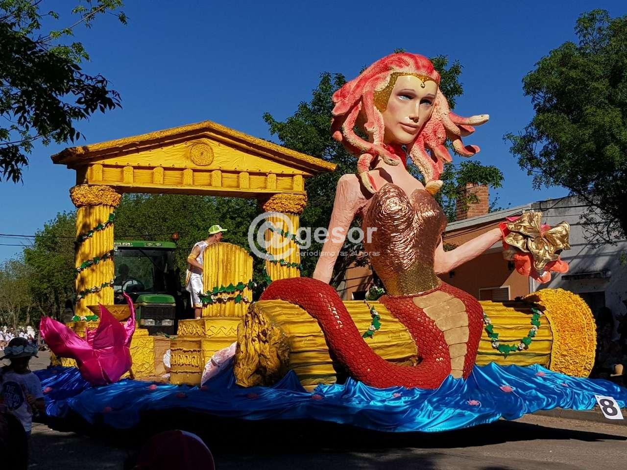 Carroza Nº 8, de 5º Arte y Científico, “Es tiempo de Renacer”. Mensaje: “Como la energía que todo lo mueve, nos transformamos. Somos el impulso y el objeto impulsado, nuestras ganas de sonreír mueven montañas y somos capaces de reconstruir sobre las ruinas de nuestro pasado. Somos la esencia de la tierra, moviéndonos agitadamente como el tiempo; somos jóvenes llenos de sueño y hoy despertamos como una más de las flores de nuestra amada primavera. Como Euriale La Gorgona, sacamos virtud del caos y tomamos ventaja de nuestras debilidades. Hoy es nuestro tiempo de renacer”.
