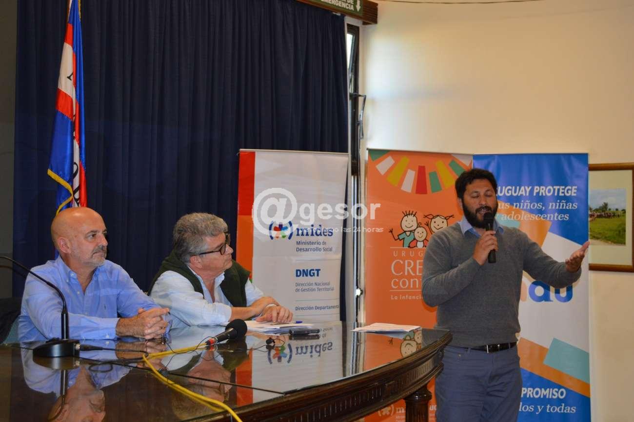 Este jueves se realizó el lanzamiento del Tercer Seminario Regional de Primera Infancia, actividad desarrollada en el salón de actos “Eduardo Víctor Haedo” de la Intendencia de Soriano, contándose con la presencia de Alvaro Arroyo Representante de Unicef, Director Nacional de Gestión Territorial del Mides Mauricio Guarinoni, el Director Nacional de Uruguay Crece Contigo Pablo Mazzini, el Director de INAU Dardo Rodríguez, Presidente de la Junta Departamental de Soriano Roque Maciel Bonti y el Secretario General de la comuna, Dr. Germán Cavallero. Durante la ceremonia arribó la Presidenta de INAU Marisa Lindner.