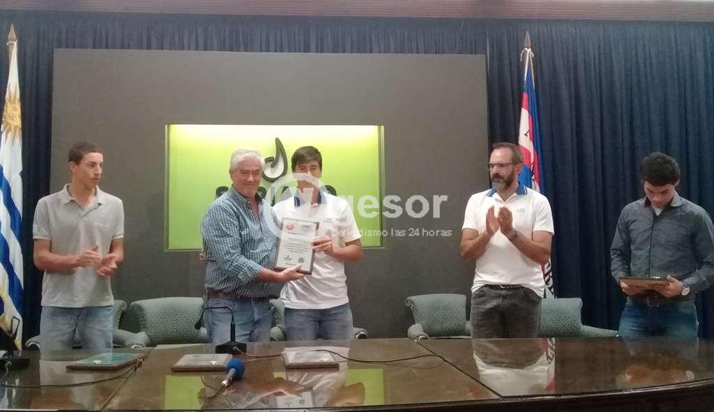 El Intendente de Soriano, Agustín Bascou Gil les entregó un reconocimiento con la medalla de Soriano, durante ceremonia que tuvo lugar en el salón de actos “Eduardo V. Haedo”. Junto al jefe comunal estuvo el Secretario de Deportes Prof. Rodrigo Eugüi.