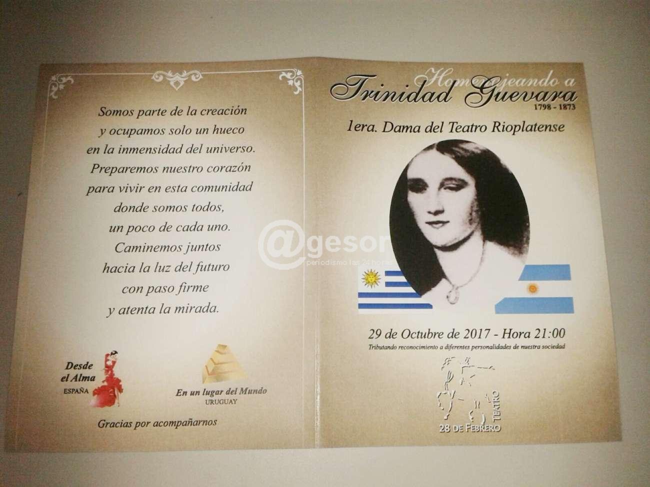 Este domingo 29 a las 21.00 horas en el Teatro "28 de Febrero" se realizará homenaje a Trinidad Guevara, Primera Dama del Teatro Rioplatense