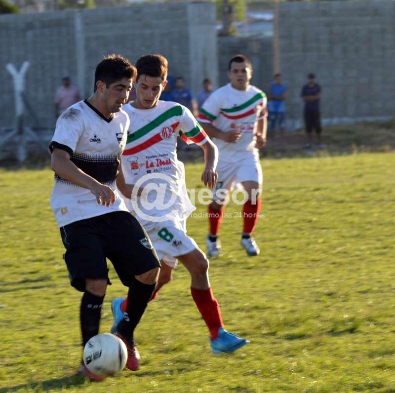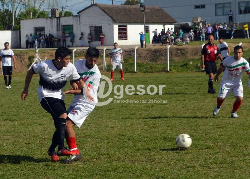 Sobre los 34' Adrián Goró ganó en velocidad por la izquierda llegó al fondo y en el centro del área Carlos Logiurato, sobre la línea de cabeza puso en ventaja Con los Mismos Colores quizás sin haber hecho mucho méritosl le daba un baldazo de agua fría a los capilleros, para llegar al final del primer tiempo, con victoria parcial de 1 a 0.