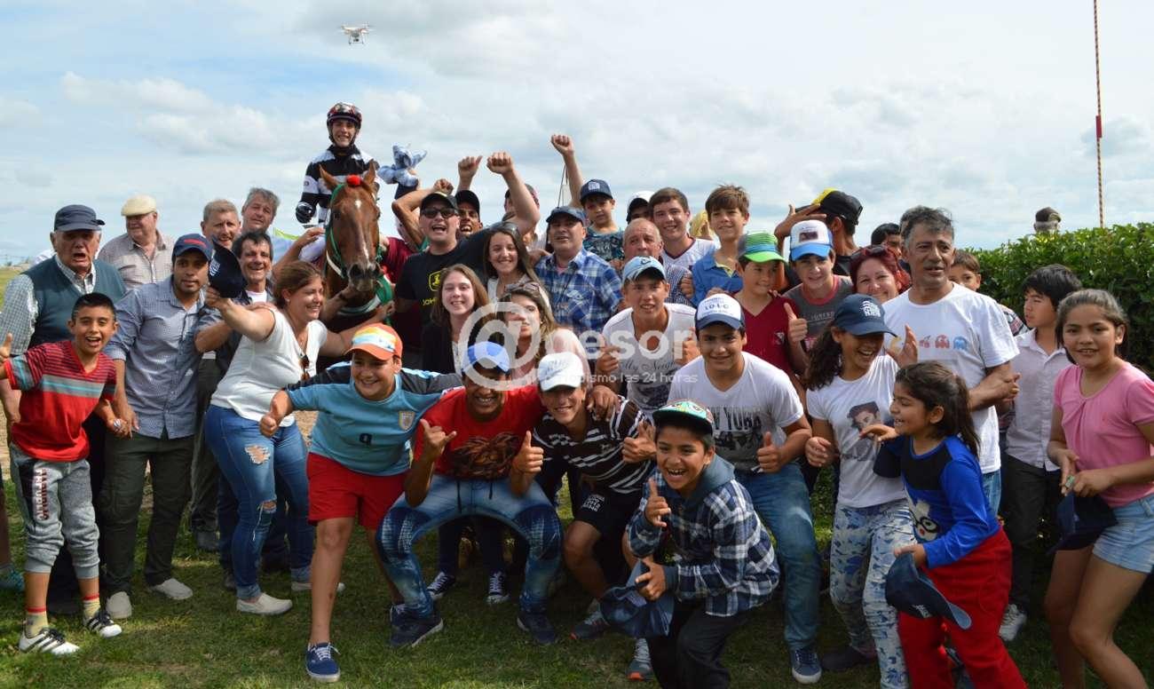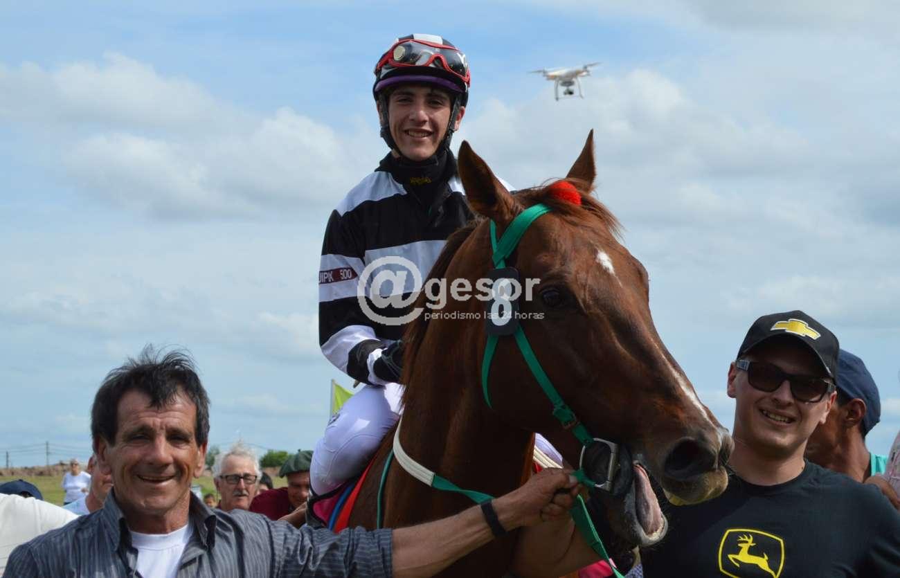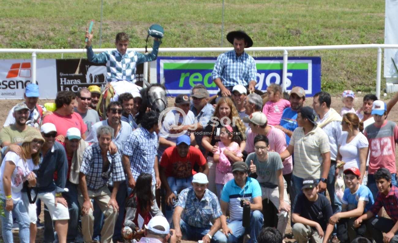 En la fotografía de tapa el pibe Santiago Da Silva cruza victorioso con amplia ventaja con Saint Ritz en El Rey de la Recta.