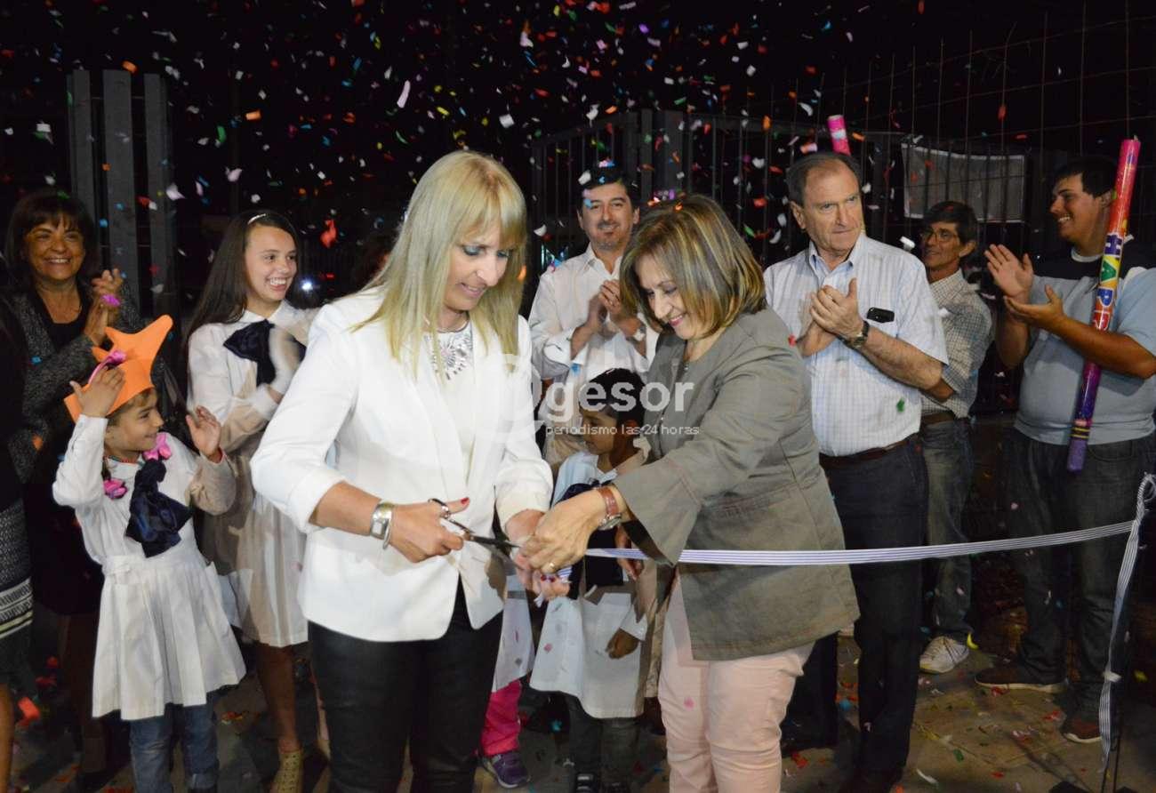 Precisamente, Irupé Buzzetti, junto a la Inspectora Departamental Insp. Raquel Casartelli fueron quienes realizaron el corte de cinta, mientras que Buzzetti junto a la Directora de la Escuela Maestra Roxana Giménez descubrieron la placa.