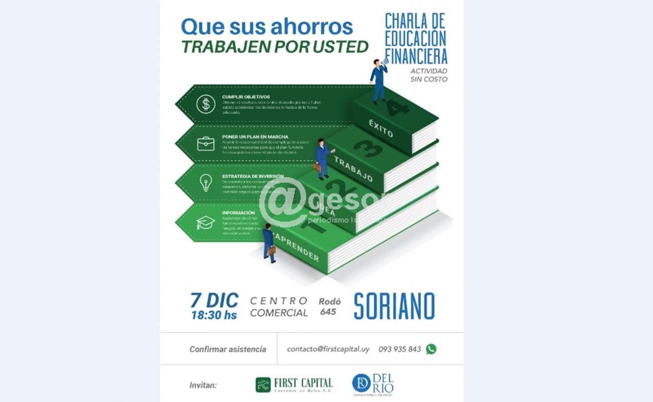La actividad no tiene costo ninguno y se desarrolla este jueves 7 a las 18.30 horas en instalaciones del Centro Comercial e Industrial de Soriano, Rodó 645, Mercedes, Soriano. Está organizada por First Capital y Del Río Consultoría y Negocio.