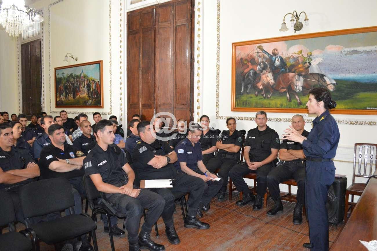 En la mañana de este martes se capacitó a los comisarios y jefes de zona, así como los encargados de distintas áreas de la Jefatura de Policía de Soriano y en la tarde decenas de funcionarios policiales que cumplen su tarea en la parte administrativa y en las calles.