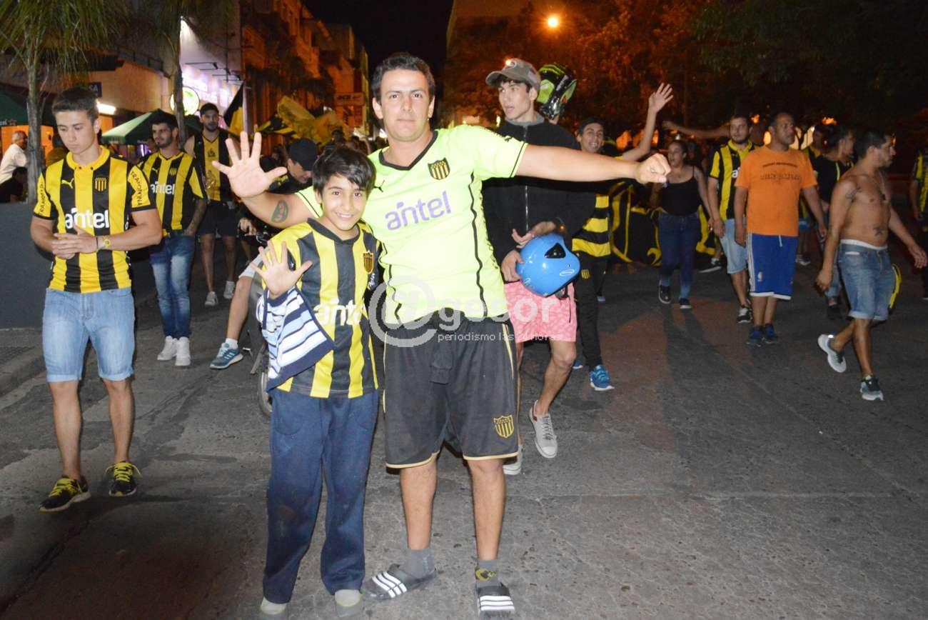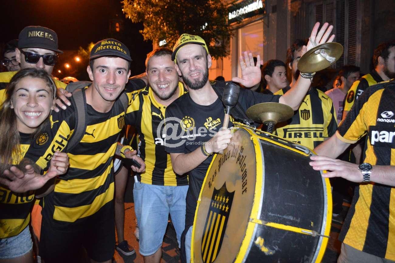 La barra Mercedes que se reúne en Ferrería y Artigas, junto a hinchas que se unieron desde distintos puntos de la ciudad, caminaron por la zona céntrica rumbo a la rambla mercedaria cantando la alegría por el título.