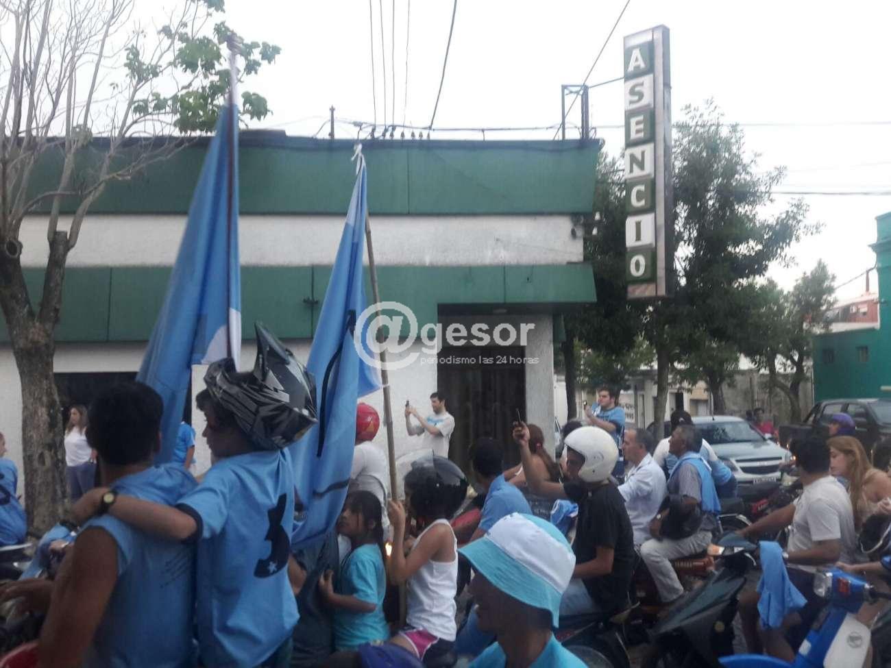 Desde todos los barrios salieron simpatizantes con camisetas y banderas festejando el título como mejor de la temporada, en el momento la caravana pasa frente a la sede del Club Asencio.