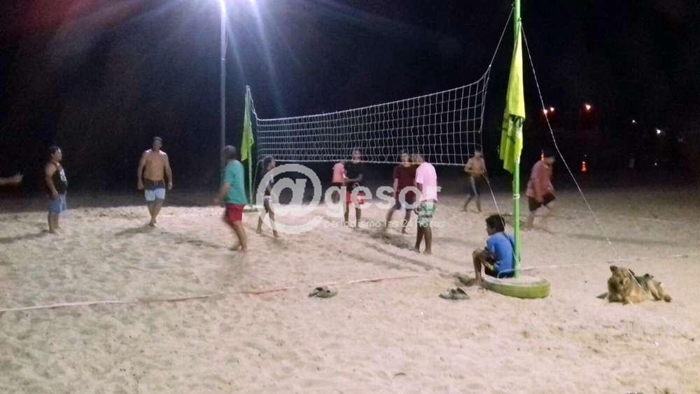En la playa de El Club en el lago de Palmar, personal municipal perteneciente a la Junta Local procedió a instalar un sistema de iluminación en el área destinada a deportes.