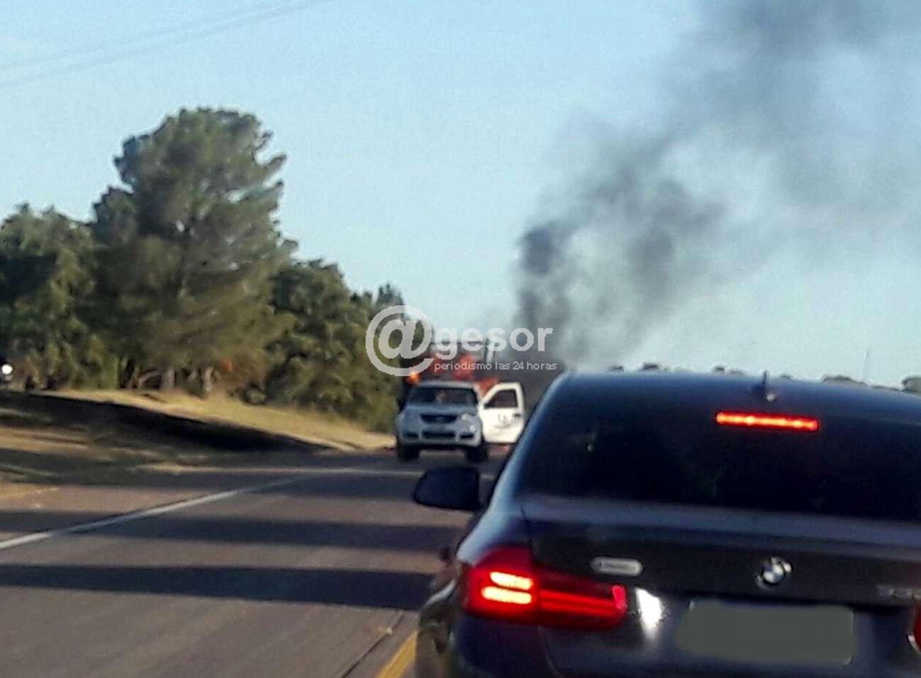 La carga de madera en rolos que transportaba un camión por Ruta 2 a la altura del km 302, tomó fuego por razones que se procuran establecer, ardiendo en su totalidad, lográndose desenganchar el tractor que tiraba de la zorra. También tomó fuego parte del predio aledaño al lugar debido a que el pasto se encuentra seco. Al lugar concurrió personal de Policía y Policía Nacional de Tránsito, ya que mientras ardía la carga, debió cortarse del tráfico vehicular que luego fue reanudado.