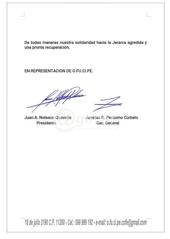 De todas maneras nuestra solidaridad hacia la jerarca agredida y una pronta recuperación.