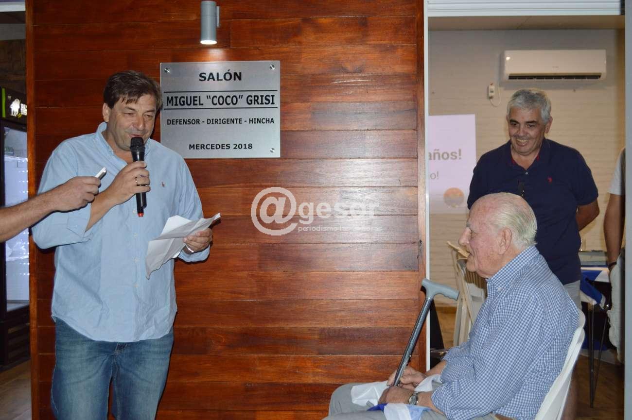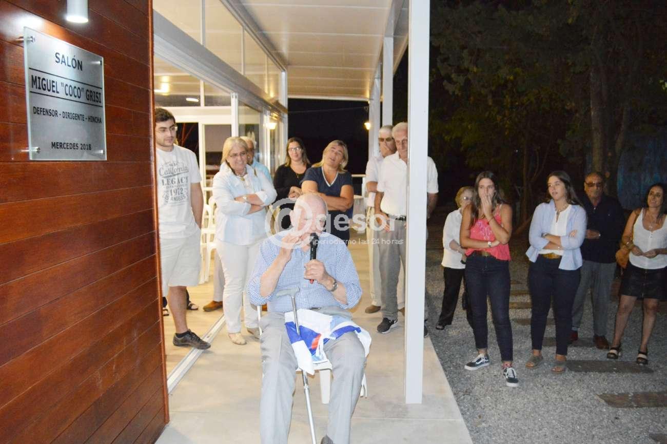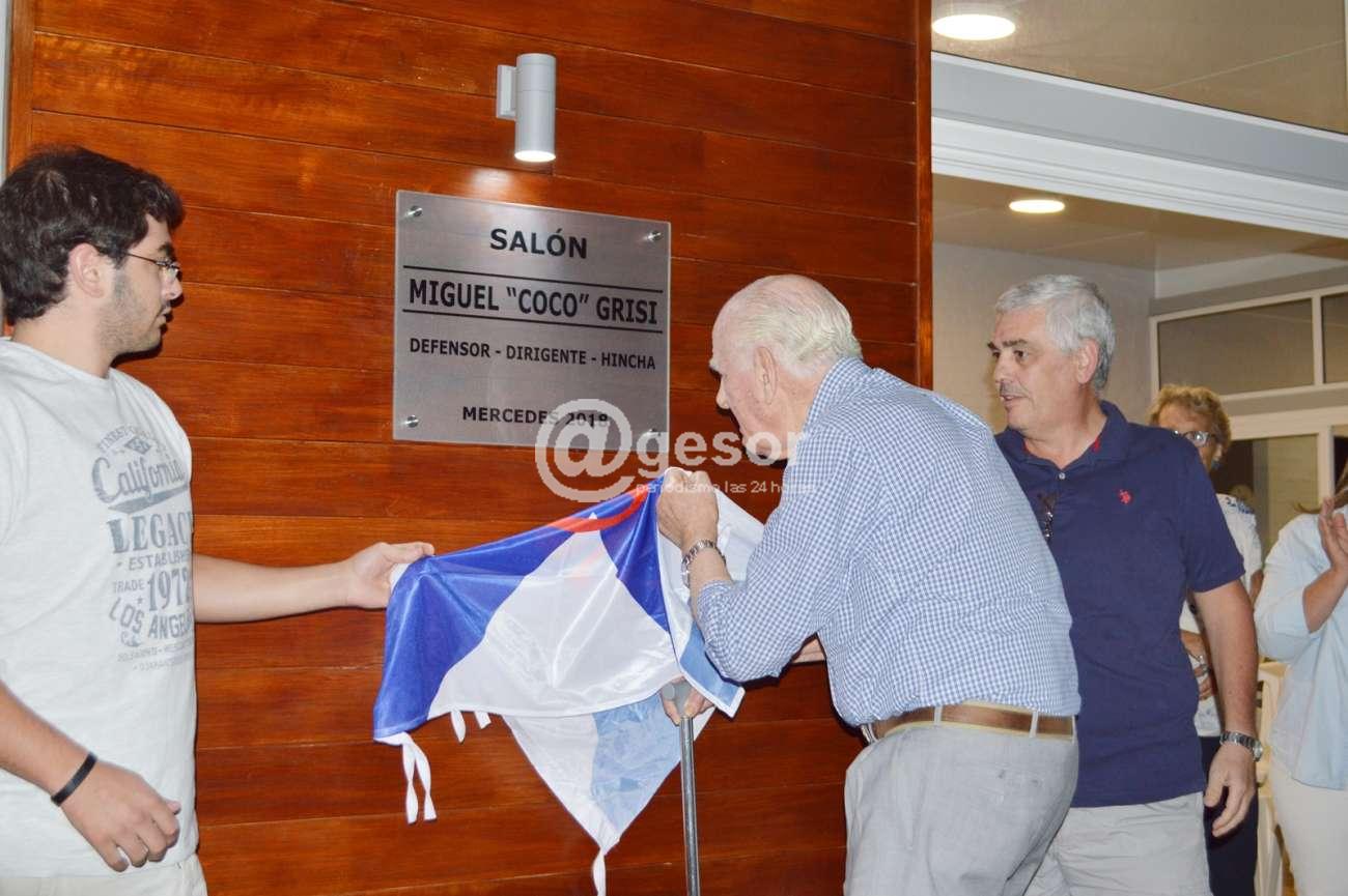 "Salón Miguel "Coco" Grisi. Defensor, dirigente, hincha. Mercedes 2018", es lo que reza la placa descubierta.