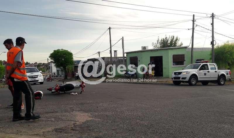 Un siniestro de tránsito protagonizado por dos motos se registró sobre las 19 .00 horas de este lunes, en la intersección de calles Garibaldi y Manuel Oribe. Como consecuencia del impacto, una mujer debió ser trasladada a un centro asistencial.