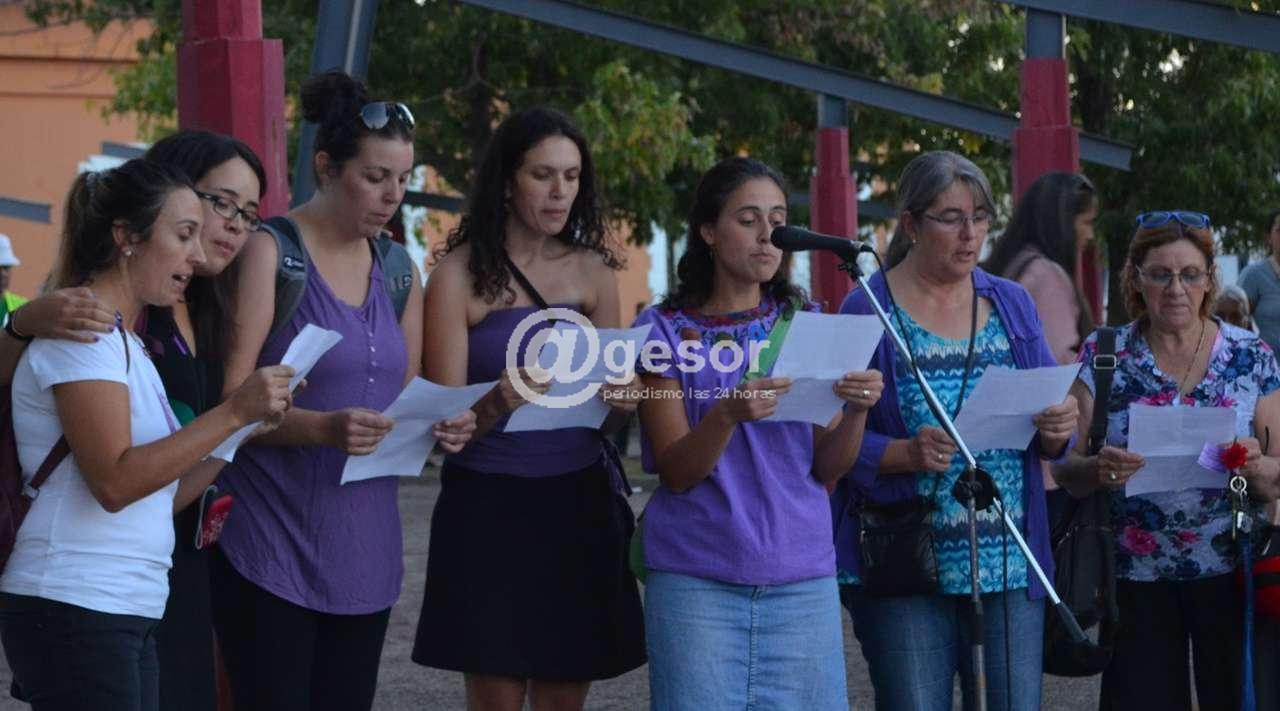 La proclama fue leída al unísono por un grupo de mujeres, y por el resto de los asistentes, ya que varias copias de la misma fueron distribuidas entre los presentes. Dicha proclama en su parte medular expresa: “hoy 8 de marzo, paramos y marchamos, pero sobre todo: nos encontramos. ¡Salú mujeres! A las que estamos hoy acá y a las que en todas partes del país y del mundo, están juntas y haciendo escuchar sus voces”. Agregando “nos manifestamos porque nos queremos todas vivas y todas libres. Nos encontramos para expresar nuestro profundo dolor por las mujeres muertas a causa de la violencia patriarcal. El año pasado fueron 35 las mujeres asesinadas, y en lo que va de este año, ya van 7 mujeres muertas. Pero las muertes son, nada menos, que el extremo más terrible y evitable de violencias que comienza mucho antes, de un modo mucho menos escandaloso y estridente”.