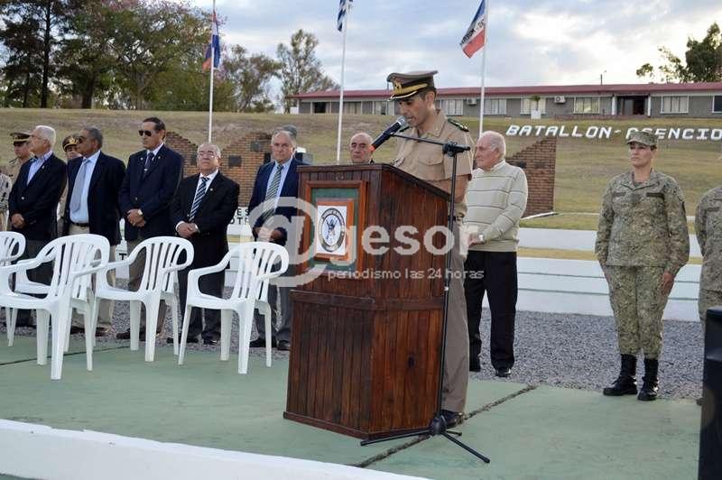 A continuación, me gustaría referirme al personal Retirado de la Unidad que se encuentra en formación y desfilará junto a los integrantes del Batallón en actividad: gracias por estar aquí presentes junto a nosotros, vuestra participación en este acto, simboliza la unión que existe entre los nuevos y viejos soldados. A quienes pretenden apartar a las nuevas generaciones de soldados,de las más antiguas, no les quepa la menor duda de que hoy en día, nos encontramos ¡más unidos que nunca!.Si hacemos un análisis objetivo de nuestra historia, la Patria, debe estarles eternamente agradecida por su sacrificio y dedicación. Son ustedes un verdadero orgullo y un ejemplo a seguir por los nuevos soldados que hoy comienzan.
