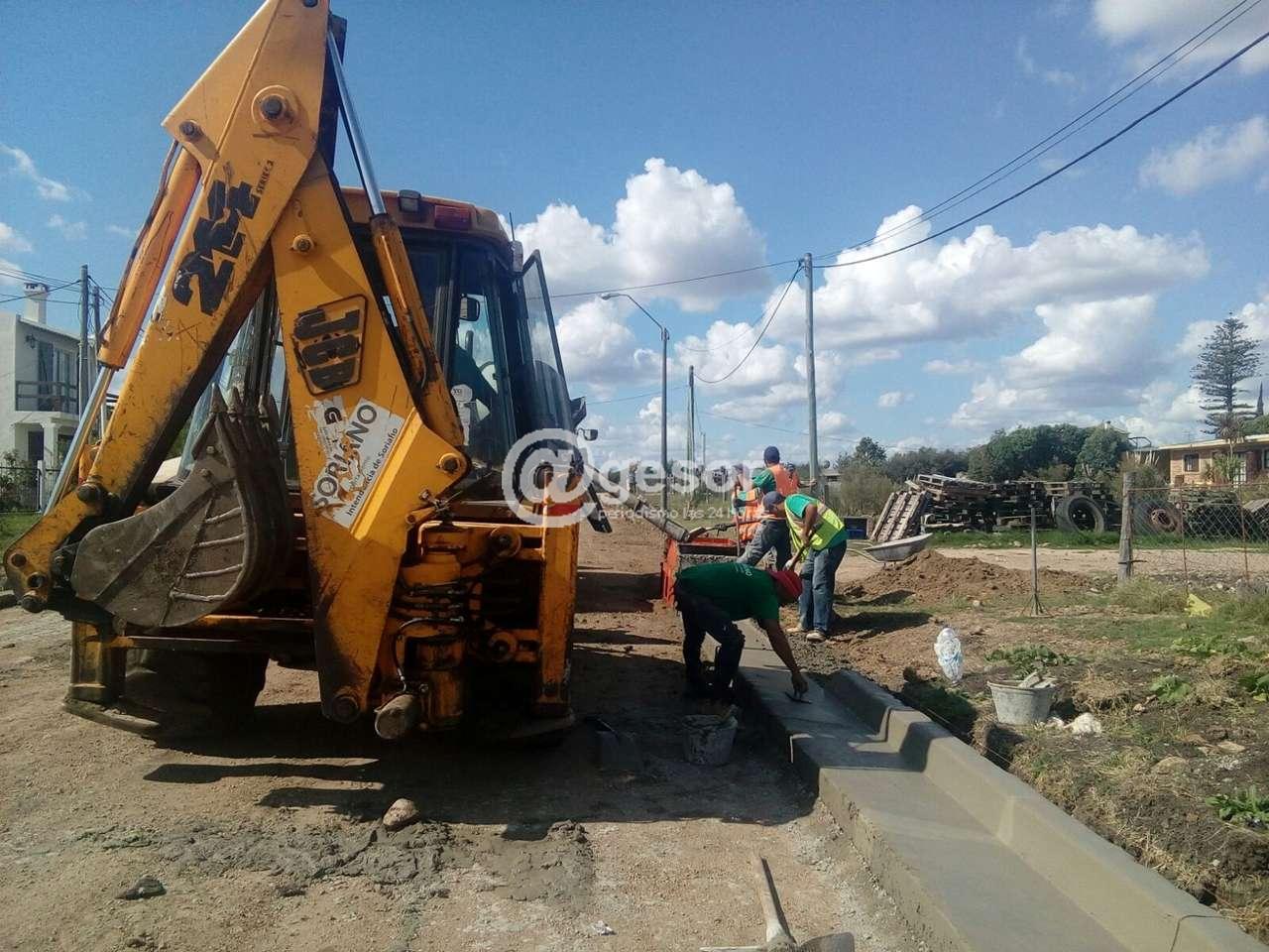 Tal es el caso de las tareas que se realizan en las calles Santa Catalina y Abrazo del Monzón, donde se construye cordón platina por parte de funcionarios municipales con su respectiva maquinaria vial.