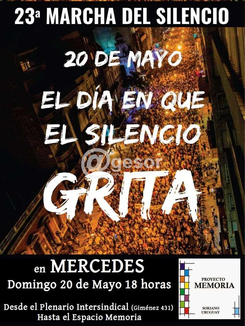 Bajo la consigna “Impunidad. Responsabilidad del Estado. Ayer y Hoy” este domingo 20 de mayo se realizará la edición 23 de la Marcha del Silencio. Como ya hace varios años Mercedes se suma a esta movilización nacional y que en los últimos años ha cobrado carácter internacional al sumarse Buenos Aires, Santiago de Chile, Barcelona y París.