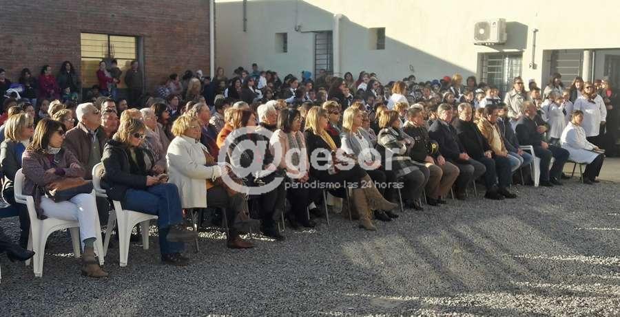 Seguidamente, la Directora del centro escolar, maestra Marta Zugnoni, expresó que “hoy nos convoca un día muy especial para toda la comunidad de este querida escuela. Es un acontecimiento emocionante, que nos inunda el alma y el espíritu de algo muy particular, prácticamente indescriptible, es que estamos reunidos para homenajear nuestra escuela, a la de todos, nada más que en sus 100 años de existencia, por lo tanto se trata de un hecho intangible que nos convoca desde el recuerdo, pero también nos une en el presente, y fundamentalmente nos proyecta en el compromiso en el futuro que es de todo, porque de otra manera, no tendría sentido este festejo”.