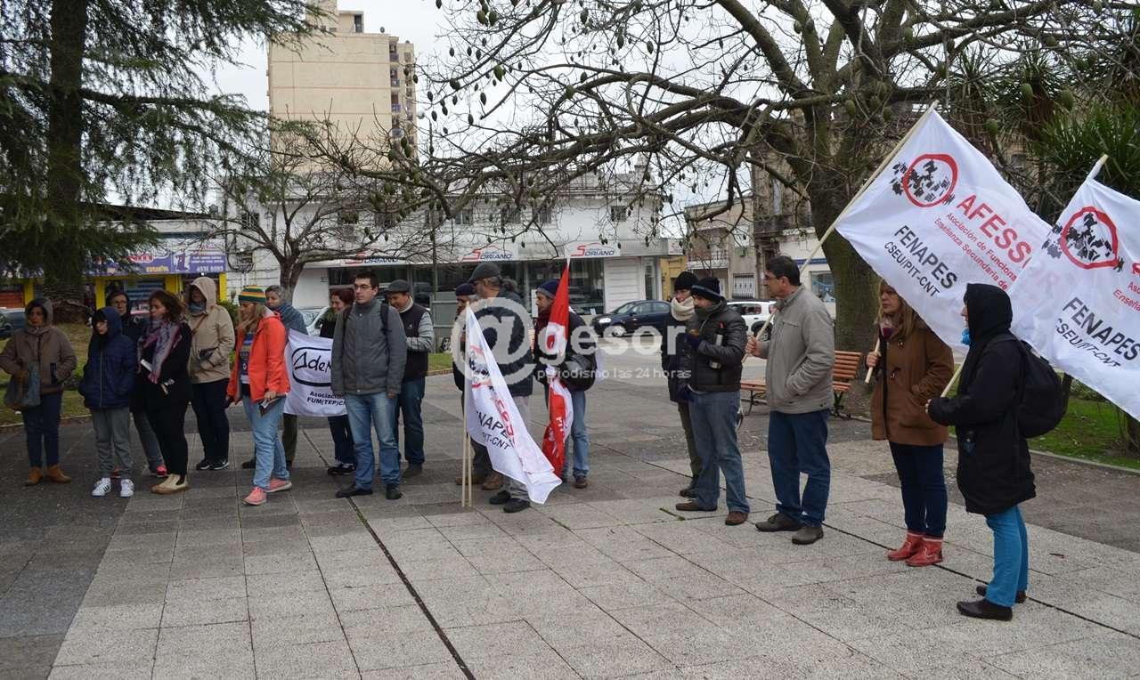 Tal como estaba previsto el gremio docente y la Asociación de Funcionarios de Enseñanza Secundaria de Soriano (AFESSOR) se concentraron frente al Liceo N° 2 de Mercedes y marcharon hasta Plaza Independencia donde se leyó una proclama. La misma expresa: