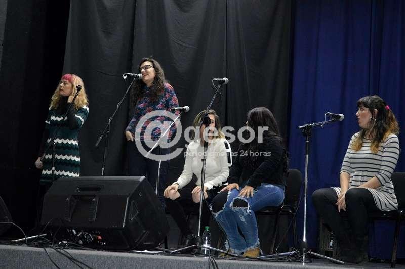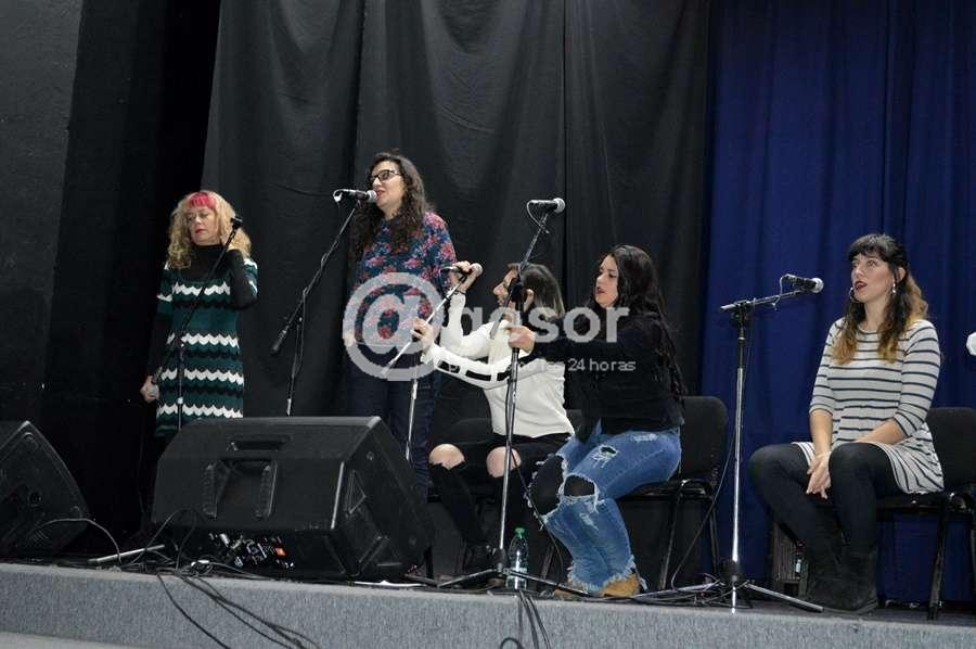 El cierre fue con voces femeninas integrantes de la murga Falta y Resto.