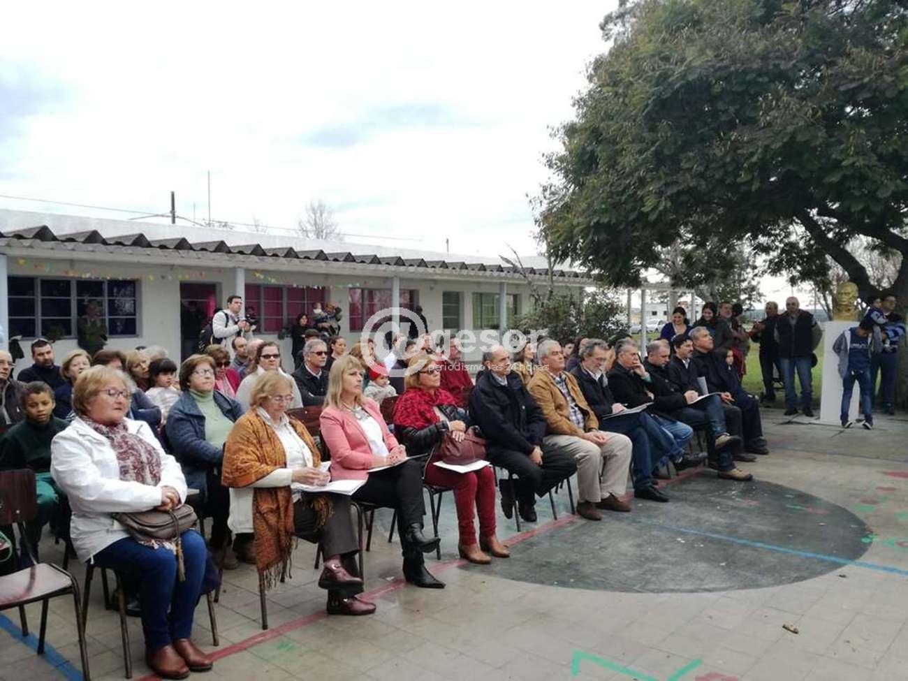 Con la presencia de autoridades departamentales y nacionales se realizó este acto en el patio de la Escuela N° 117 de Palmar, ubicada en la ruta 55 a la altura del kilómetro 16 , que el pasado 19 de junio cumplió sus 40 años. La inspectora Departamental de Primaria Raquel Casartelli, en diálogo con @gesor recordó que la Escuela se encuentra en un predio de UTE y que el ente se hizo cargo de las tareas de refacción consistente en arreglos edilicios en los salones, la sala de vídeo, la cocina y la dirección, entre otros sectores, más las refacciones vinculadas a pintura, electricidad y aberturas, asumidos por UTE con un costo estimado de $ 2.500.000.