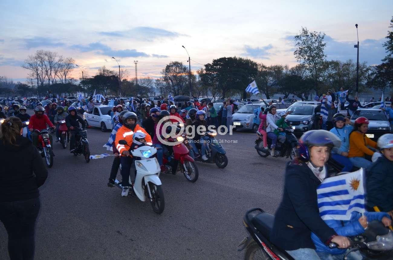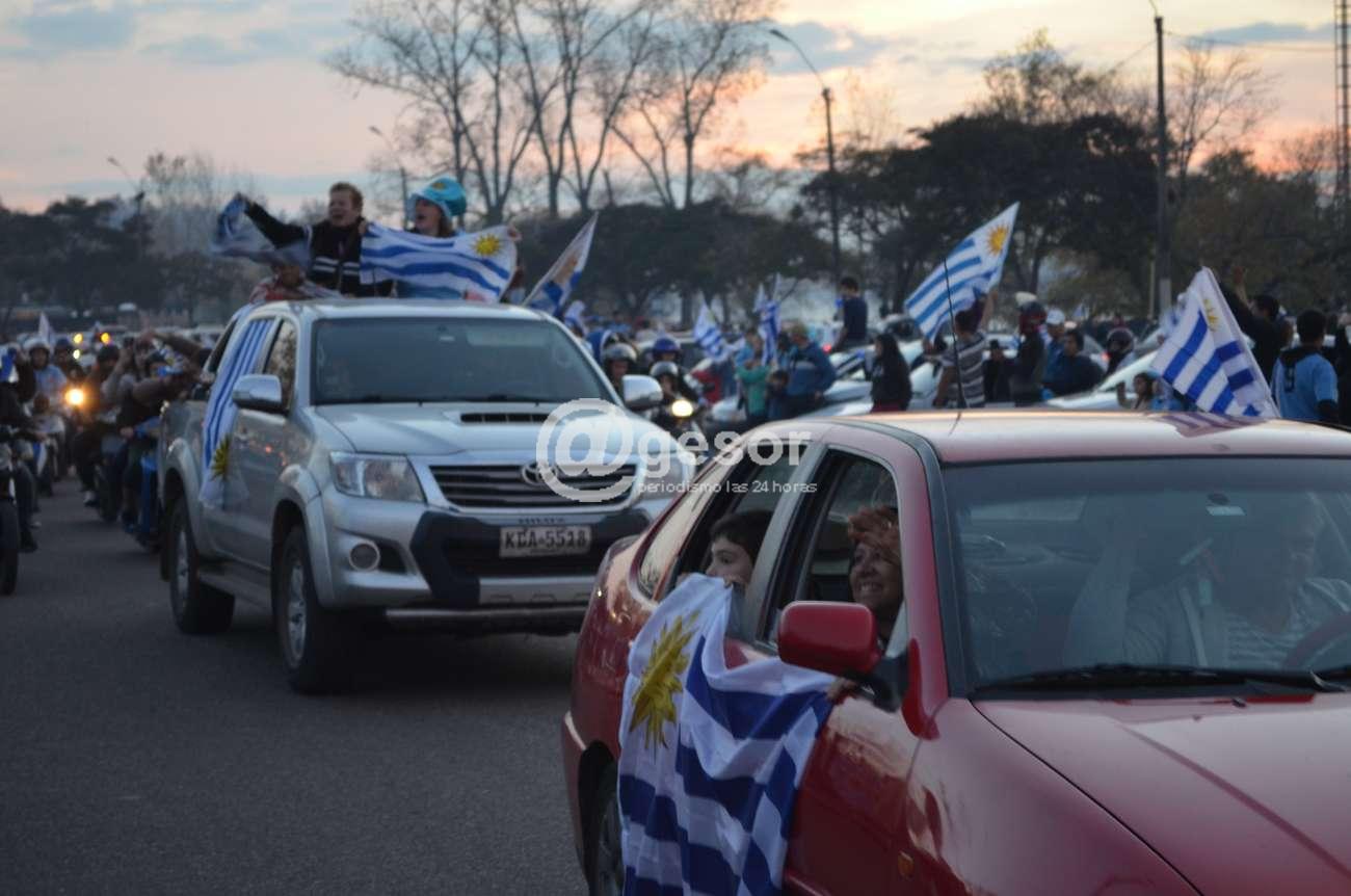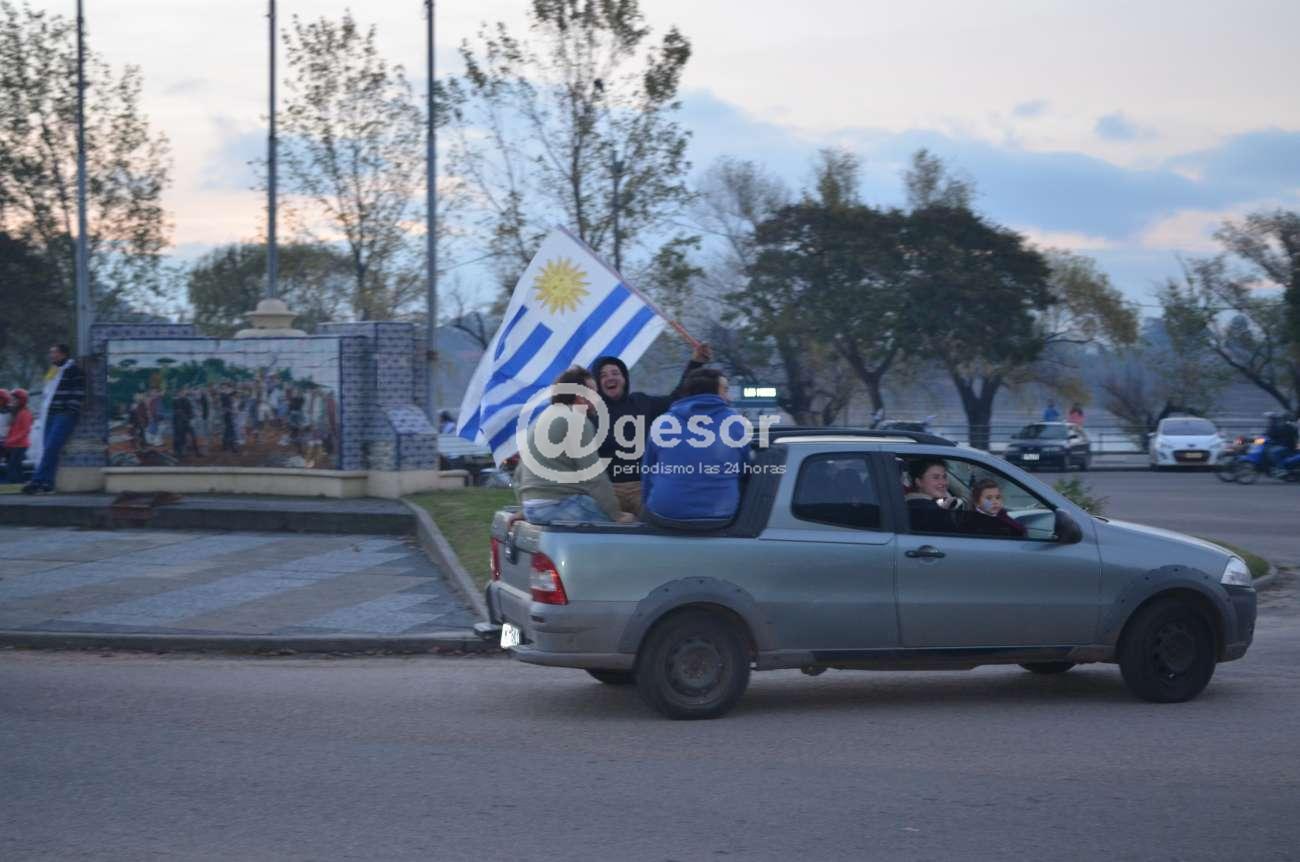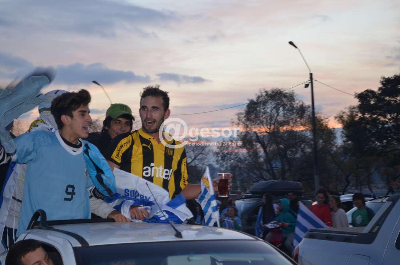 Los nervios por el partido que la selección nacional debió disputar ante Portugal en la copa del Mundo 2018 se transformaron en gritos de alegría, y como ocurre a esta hora en todo el país, los mercedarios también salieron a la calle gritando “¡Soy Celeste!”. Con las caras pintadas, o embanderados personas de todas las edades festejan a esta hora el triunfo de la selección uruguaya y su pasaje a una epata más del mundial de Rusia 2018. Improvisadas caravanas salidas de diferentes barrios recorrieron las calles y varias de ellas a esta hora confluyen en la rambla de Mercedes donde dan rienda suelta a la alegría, tal como lo testimonian las imágenes recogidas por @gesor.